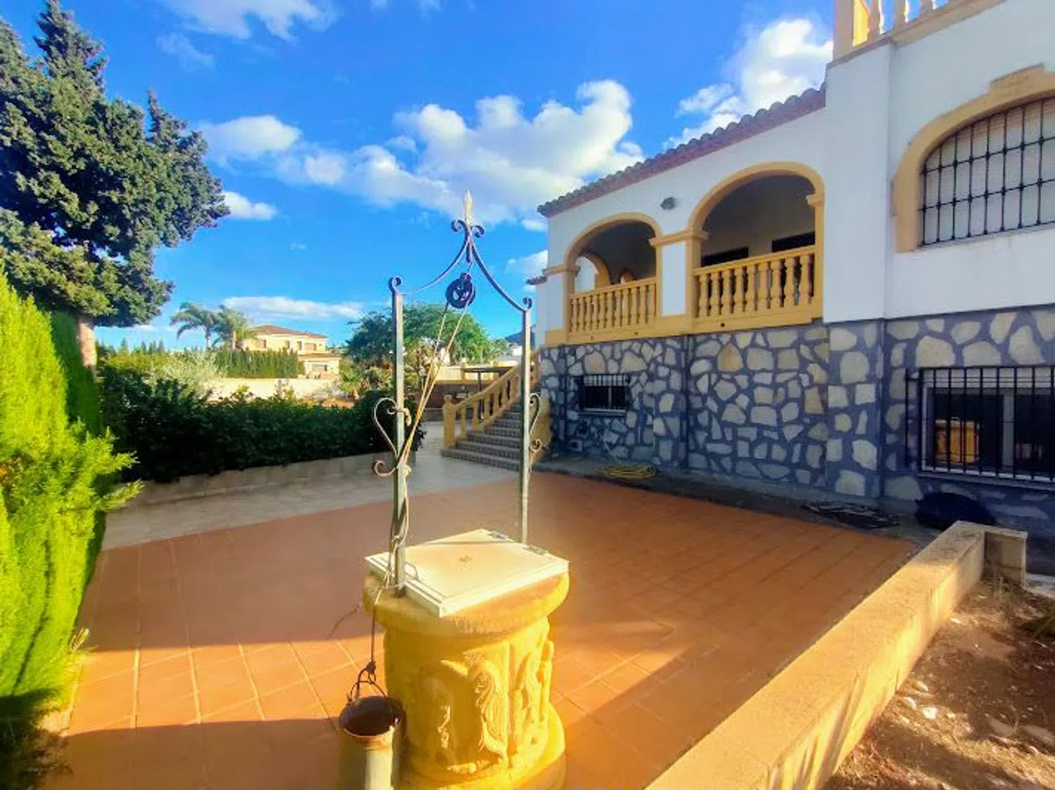 En el exterior, se destaca una encantadora piscina de 40 m², una zona de barbacoa perfecta para disfrutar del clima mediterráneo, y una bodega pensada para los entusiastas del vino. Además, el jardín cuenta con un pozo y un aljibe, lo que aporta un toque de autosuficiencia a la propiedad. Las ventanas de doble cristal de PVC y el sistema de calefacción por gasoil garantizan un confort óptimo durante todo el año, mientras que los armarios empotrados en las habitaciones brindan un excelente espacio de almacenamiento.