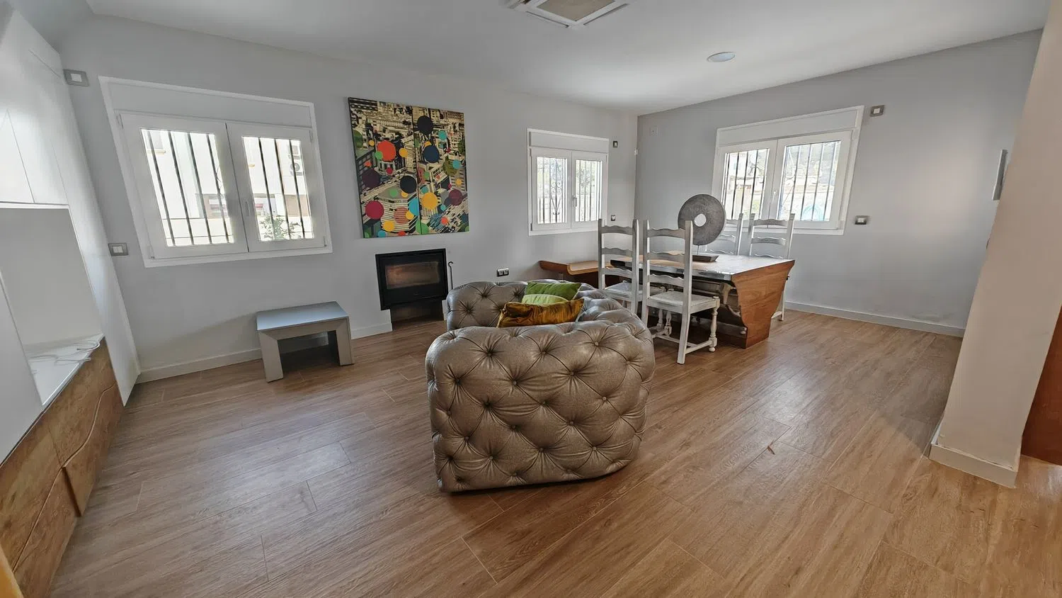 La renovación integral de la vivienda asegura un ambiente moderno y funcional, y está equipada con aire acondicionado en todas las estancias, garantizando bienestar durante todo el año.