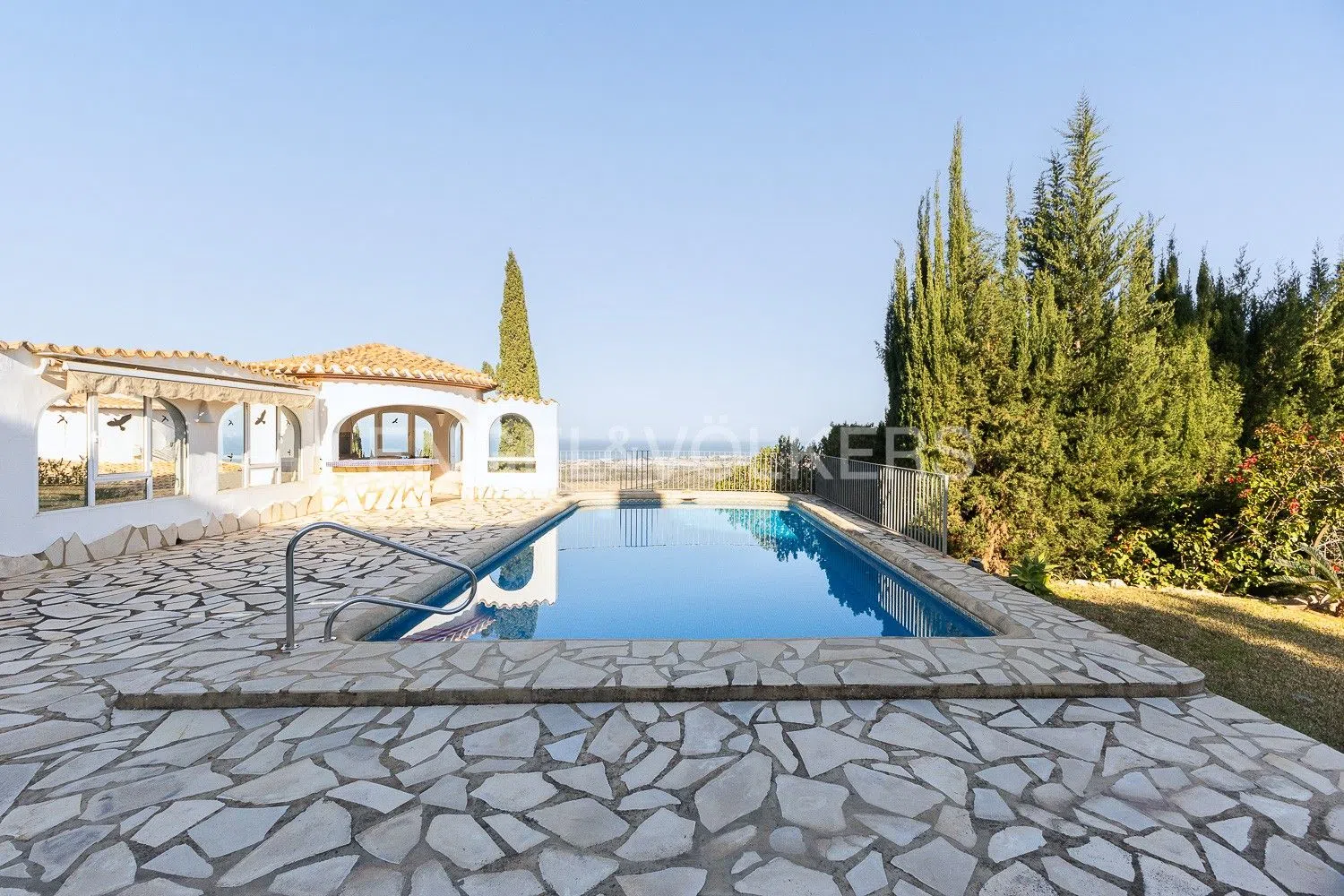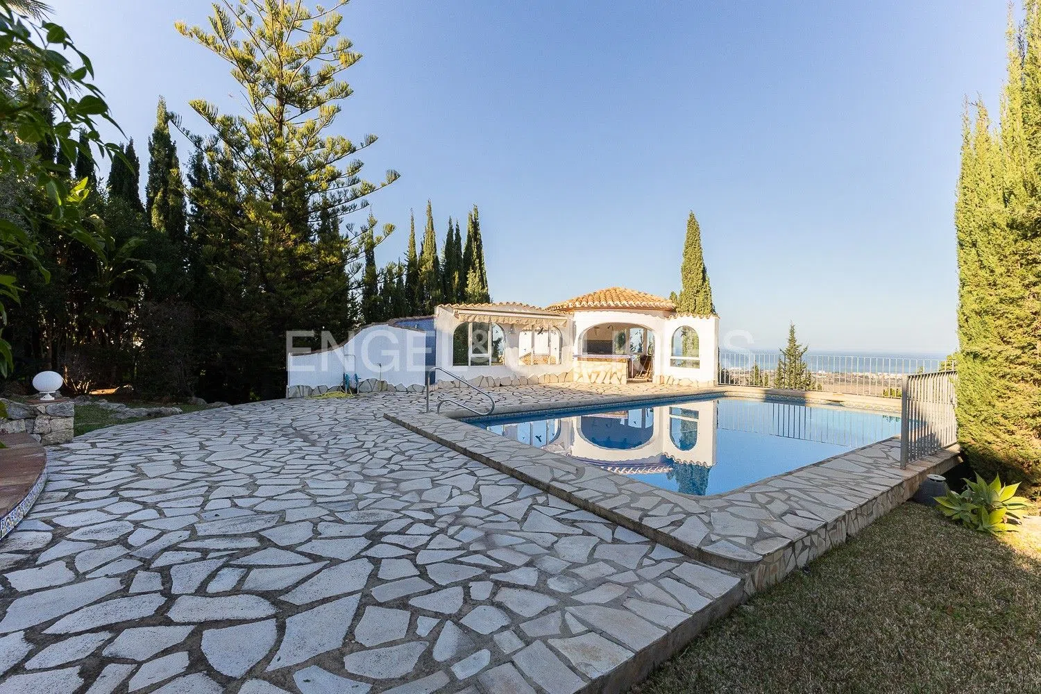 Paraíso Mediterráneo: Villa + Terreno Con Vistas Al Mar Como lo lees! Esta maravillosa villa incluye en el precio, un terreno adicional justo en frente, fue adquirido estratégicamente en su momento, para asegurar que nadie pudiera construir, lo que garantiza que las vistas al mar se mantendrán intactas de por vida. Esto convierte a esta propiedad en una inversión única y exclusiva. Ideal para aquellos que buscan un hogar con vistas despejadas, sin preocupaciones de futuras construcciones. Para acceder a la vivienda se puede hacer uso de una puerta eléctrica para los coches, o de la entrada independiente para peatones. Dispone de un Car-Port para invitados y un garaje con puerta eléctrica, con capacidad para un coche y acceso directo al interior de la vivienda. La propiedad tiene 3 plantas en total y se distribuye de la siguiente manera: En la planta baja, encontramos un amplio salón-comedor con estancias divididas, una cocina moderna con salida a un porche que alberga una barbacoa, dispone también de un baño de cortesía para invitados y una habitación con baño en suite sumado a una terraza privada. Desde el salón, el comedor y esta habitación se puede acceder directamente a la naya que cuenta con acceso directo a la piscina, además de impresionantes vistas panorámicas al mar. En la primera planta, el recibidor cuenta con un balcón que permite ver el salón de la planta baja, añadiendo un toque de elegancia y amplitud a la vivienda. Una de las habitaciones de esta planta se usa actualmente como escritorio, tiene balcón y vistas al acceso principal de la vivienda. La otra habitación es la suite principal, que incluye baño en suite y acceso directo a una terraza con espectaculares vistas al mar. En la planta -1, se encuentra un estudio independiente especial para huéspedes, con una habitación, baño en suite y salida directa a la piscina. El jardín está exquisitamente cuidado, brindando un espacio perfecto para relajarse. La propiedad dispone de ventanas y puertas de alta calidad, aire acondicionado en todas las habitaciones, calefacción central por radiadores, lo que garantiza confort durante todo el año. Monte Pego es una encantadora urbanización situada en la provincia de Alicante, conocida por su entorno natural. Rodeada de montañas, vegetación y mar, ofrece un ambiente tranquilo ideal para vivir o vacacionar. Su ubicación estratégica permite acceder fácilmente a playas cercanas y a pueblos pintorescos como Denia, así como a diversos restaurantes y comercios, cerca se encuentran también campos de golf, el centro comercial, el centro hípico y un sinfín de posibilidades enfocadas en el ocio. Monte Pego es el lugar ideal para quienes buscan un estilo de vida relajado en un entorno privilegiado.