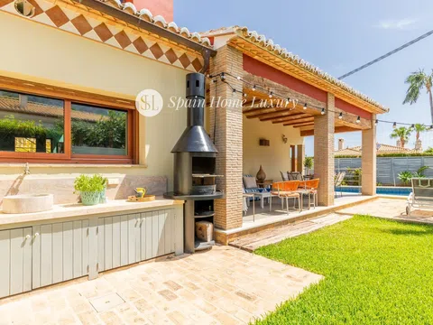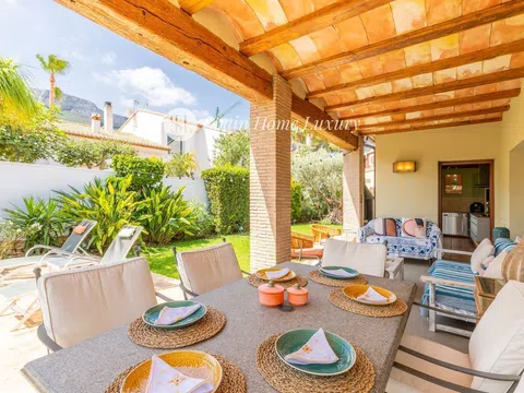 Este impresionante chalet independiente de 262 m² construidos ofrece todo lo que siempre has soñado. Ubicado en una zona tranquila, cuenta con una piscina privada de 10m x 5m, perfecta para disfrutar del sol mediterráneo. El jardín establecido con árboles frutales y el sistema de iluminación y riego te permitirán relajarte y disfrutar del entorno natural. La planta baja alberga un amplio salón/comedor formal de 8m x 4,6m, una cocina de ensueño de 5,2m x 5m con isla y una cocina exterior con barbacoa. Además, encontrarás dos dormitorios, uno de ellos una master suite de 38m² con vestidor y baño en suite, y otro dormitorio de 3,45m x 4,8m junto a un baño con ducha a ras de suelo. En el piso superior, disfruta de las vistas al Montgó, al Castillo de Denia y a la costa desde la terraza superior de 5m x 5m. También hay un dormitorio adicional con vistas impresionantes y un baño con ducha a ras de suelo. El sótano es un espacio versátil con una cocina de 7,2m x 5m y una bodega de 3,7m x 2m, ideal para reuniones familiares o eventos. La propiedad incluye calefacción central, estufa de leña grande, aire acondicionado por conductos con control individual, mosquiteras y contraventanas integradas en todas las ventanas, alarma y videoportero. Con estacionamiento fuera de la vía pública para múltiples vehículos y una plaza de garaje, este chalet es perfecto para quienes buscan comodidad y lujo. Construido en 2004 y en excelente estado, no pierdas la oportunidad de vivir en este paraíso. ¡Contacta ahora para más información! Calefacción central Estufa de leña grande Aire acondicionado por conductos y control individual. Piscina privada de 10m x 5m Terrazas cubiertas y abiertas. Estacionamiento fuera de la vía pública para múltiples vehículos. Master suite de 38m2 con vestidor Amplio sótano y bodega. Jardín establecido con árboles frutales. Amplia cocina comedor con isla. Cocina exterior con barbacoa. Mosquiteras y contraventanas integradas en todas las ventanas. Alarma y videoportero. Iluminación de jardines y sistema de riego. luces LED PLANTA BAJA Una gran entrada conduce a un gran pasillo/recepción con techo de doble altura y modernos azulejos de color gris claro. Desde aquí podemos acceder al salón principal y a dos de los dormitorios. SALÓN/COMEDOR FORMAL: 8m x 4,6m A través de una puerta pivotante de 1,4 m de ancho encontramos un amplio salón y comedor formal con iluminación de diseño italiano, vistas a la piscina, contraventanas de madera y puertas que dan a la terraza y al jardín. Aire acondicionado Mitsubishi por conductos, radiadores y una gran estufa de leña Stûv hecha a medida COCINA: 5,2m x 5m Amplia cocina/comedor moderno, una isla de gran tamaño y mucho espacio de almacenamiento incluso para los chefs más extravagantes. Las encimeras y el fregadero integral son de granito orgánico, hay una placa de inducción (80 cm x 52 cm) con extracción, horno y lavavajillas integrados y una lavadora Miele con secadora Miele separada. Acceso a la terraza, jardín y cocina exterior. DORMITORIO PRINCIPAL: 4,45m x 3,48m Amplio dormitorio doble con suelo de madera auténtica. VESTIDOR Vestidor equipado con una variedad de colgadores, estantes, cajones empotrados, zapatero extraíble y armarios hasta la altura total del techo. BAÑO EN SUITE: 4,5m x 2,5m Amplio cuarto de baño privado con lavabo doble de mármol, inodoro y bidé, ducha con plato de mármol, dos radiadores toallero de cuerpo entero y espacio de almacenamiento. DORMITORIO: 3,45m x 4,8m Doble grande con armarios empotrados y cajoneras, suelo de tarima. BAÑO Ducha a ras de suelo, tocador con espacio de almacenamiento incorporado debajo, inodoro PISO SUPERIOR Las escaleras conducen desde el pasillo, pasando por ventanas de doble altura, hasta un entrepiso que actualmente se utiliza como estudio/biblioteca y zona de estar/dormitorio de invitados adi.