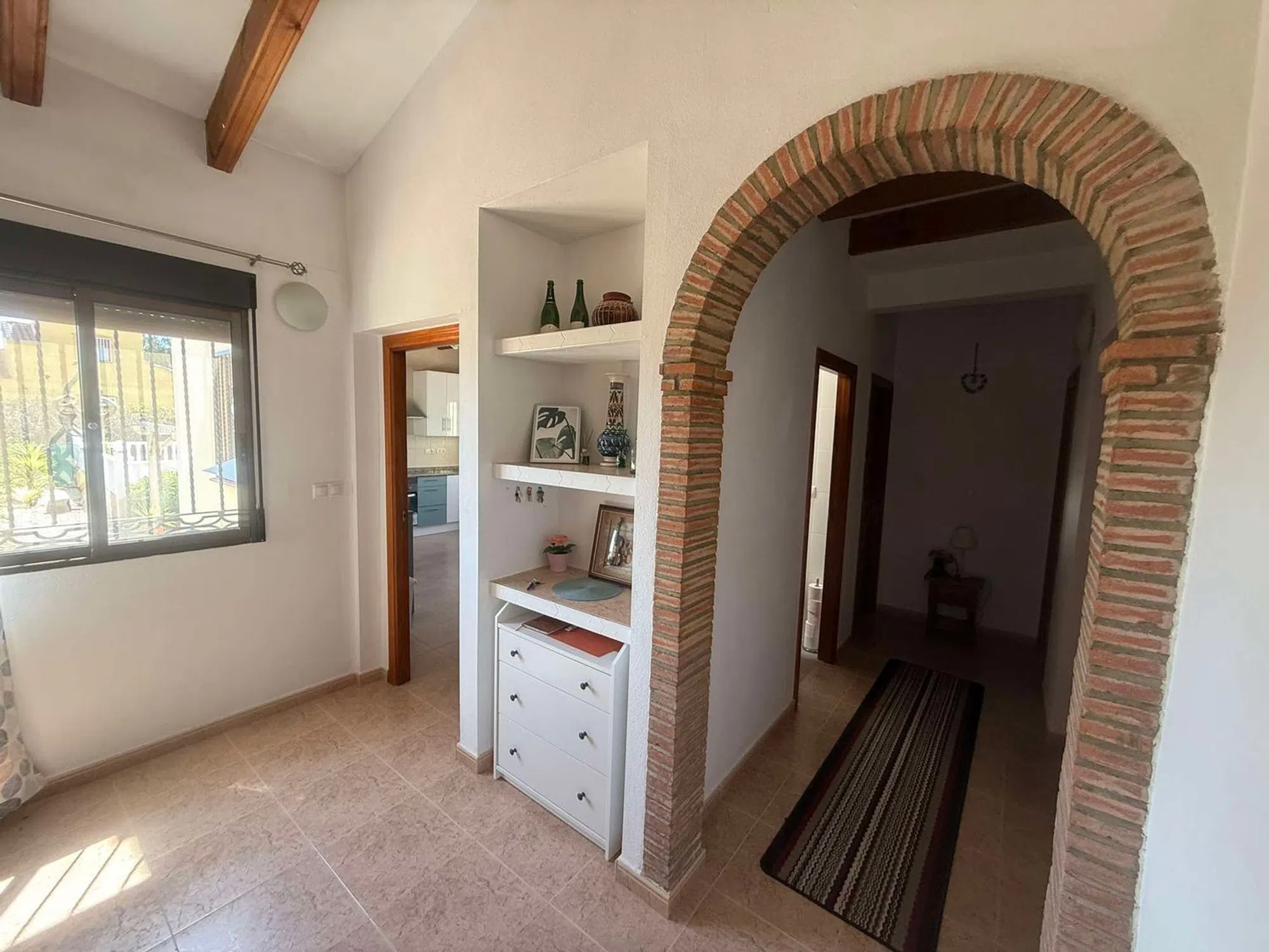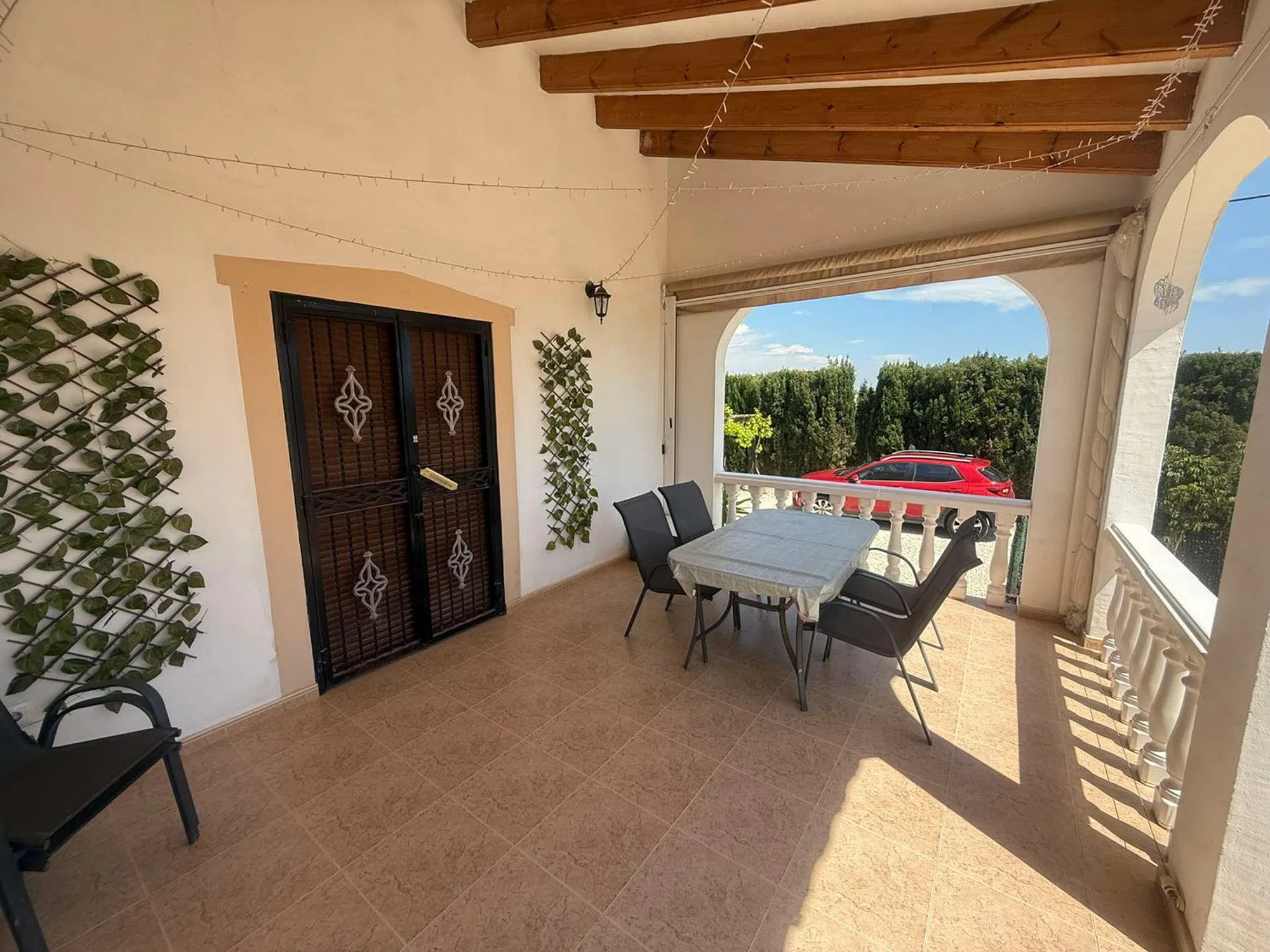JL Morales Real Estate está muy contento de traer esta impresionante villa familiar al mercado. Esta propiedad tiene una superficie construida de 174 m2 distribuidos en dos plantas y se encuentra dentro de su propia parcela privada ajardinada de 1565m2. Al entrar en la propiedad desde la terraza cubierta, se encuentra en el pasillo substancial. Desde aquí, encontrará la sala de estar. A la izquierda está la gran cocina comedor totalmente equipada. Derecho a lo largo del pasillo tiene tres de los cuatro dormitorios. Todas son dobles de buen tamaño con armarios empotrados. Uno está siendo actualmente siendo utilizado como una oficina en casa. Hay un cuarto de baño recientemente reformado en este nivel que incorpora una gran cabina de ducha. El maestro también en este nivel tiene un gran cuarto de baño recién reformado de nuevo con cabina de ducha. A la derecha del pasillo es el salón de triple aspecto con puerta de acceso a la terraza cubierta. La calefacción es por una estufa de leña en la chimenea. Hay una escalera, fuera de la sala de estar, que conduce a la cuarta habitación doble con armarios empotrados y un cuarto de baño con ducha. También tiene la ventaja añadida de acceso a una impresionante orientación sur solarium en la azotea con vistas al jardín y el campo circundante. Todo el jardín ha sido bellamente ajardinado con varios arbustos y árboles maduros. Encontrarás una zona de barbacoa a un lado de la propiedad y dos trasteros uno en forma de un gran cobertizo de madera 3x3m el otro un taller, una cochera para un coche y un montón de espacio para el estacionamiento de otros. Esta propiedad también tiene los beneficios añadidos de aire acondicionado frío y caliente en todo, y se vende totalmente amueblado a un nivel muy alto. Situado en el campo de Dolores es sólo un corto de 5 minutos en la ciudad de Dolores o Catral, donde encontrará todas las tiendas, bares, restaurantes y servicios. Acceso a las hermosas playas de La Marina dentro de 15 minutos y el aeropuerto internacional de Alicante dentro de 30 minutos en coche. En definitiva, una propiedad impresionante y realmente es una visita obligada.