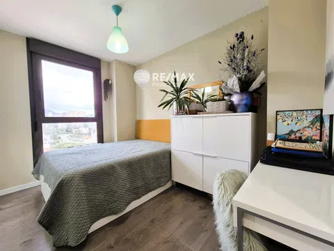 La vivienda, de 115 m², cuenta con 3 dormitorios y 2 baños, todos con acabados de alta calidad. Los armarios empotrados y el trastero proporcionan un amplio espacio de almacenamiento. La finca está equipada con placas solares para el agua caliente, garantizando un consumo energético económico y sostenible. Además, la plaza de garaje es la más amplia de toda la urbanización, perfecta para cualquier tipo de vehículo. Este piso en la planta 6, con orientación sur y este, asegura luminosidad durante todo el día. La calefacción por bomba de frío/calor y el aire acondicionado te ofrecen el máximo confort en cualquier estación. El edificio cuenta con ascensor y está adaptado para personas con movilidad reducida. Disfruta también de las zonas comunes que incluyen una piscina; pista de padel, zonas infantiles y un jardín donde relajarte. Con una clase energética B, este piso es una opción eficiente y respetuosa con el medio ambiente. No dejes pasar la oportunidad de vivir en un entorno privilegiado con todas las comodidades que mereces. ¡Ven a visitarlo y enamórate!