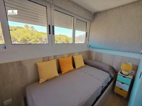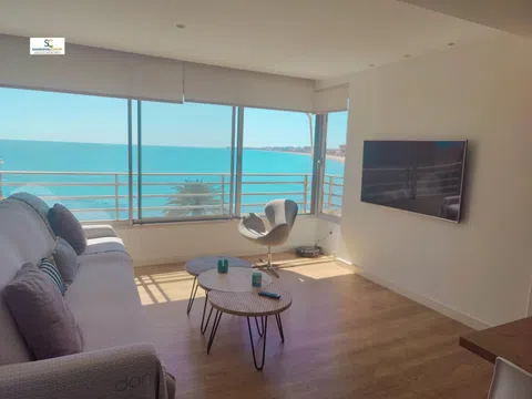 Agente de la Propiedad Inmobiliaria, A. P. I. 1108, te ofrece ¡Descubre tu nuevo hogar en primera línea de playa! Te presentamos este espectacular piso que ofrece vistas impresionantes al mar, completamente reformado, perfecto para disfrutar de la brisa marina y la tranquilidad que solo la costa puede brindar. Con dos luminosos dormitorios y dos fantásticos baños, el dormitorio principal cuenta con vistas al mar y un baño en suite, mientras que el segundo dormitorio tiene dos camas y un espacio adicional con puerta para mayor privacidad. Este hogar es ideal para familias o para recibir visitas, añadiendo comodidad y funcionalidad. La cocina americana es moderna y práctica, conectada con un acogedor salón-comedor que también ofrece vistas panorámicas al mar, creando un ambiente acogedor perfecto para relajarte o entretener a tus seres queridos. La urbanización es muy completa, con piscina, zonas deportivas y áreas infantiles, ideal para disfrutar de momentos en familia o con amigos. Además, incluye plaza de parking y trastero, brindándote todo el espacio que necesitas. ¡No dejes pasar la oportunidad de vivir en este maravilloso lugar! Contáctanos para más información y ven a visitarlo. ¡Te esperamos! El presente documento tiene carácter meramente informativo, orientativo y no vinculante, por lo que no supone información contractual alguna, siendo su uso estrictamente comercial. Inmobiliaria Sandoval Playa San Juan de Alicante destacada por la selección más activa de pisos, apartamentos, chalets, bungalow y propiedades comerciales de la zona, y con la mejor eficiencia en su venta facilitando toda la gestión notarial y registral así como la custodia y eficaz servicio de los inmuebles que representamos. Puede solicitar más información o concertar una visita al piso: Inmobiliaria Sandoval Costa, Playa de San Juan Alicante. Av. Holanda, 5.