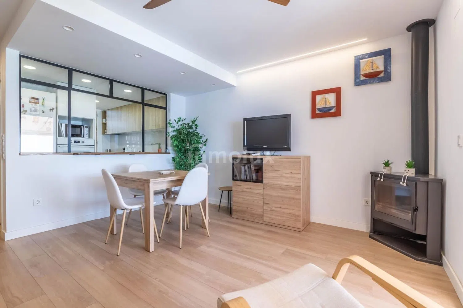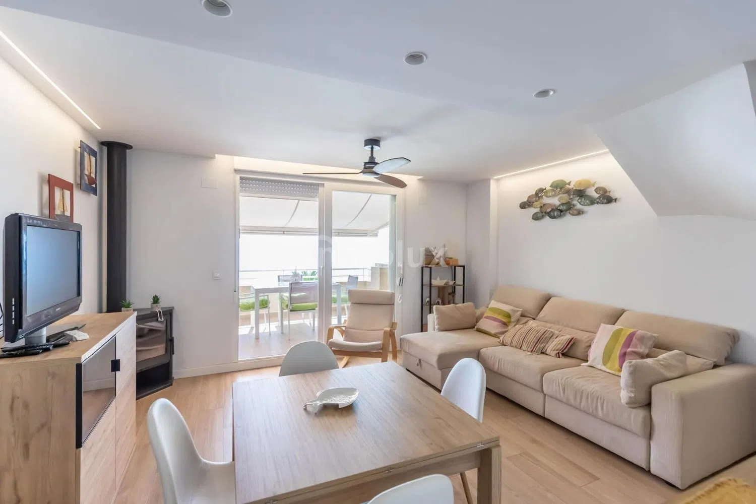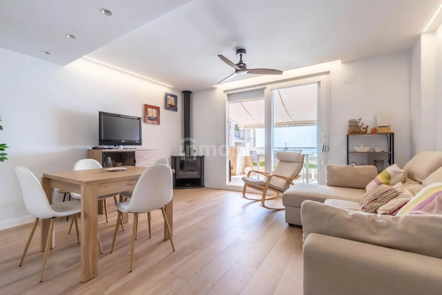 Con una superficie de 97 metros cuadrados, este inmueble te ofrece un estilo de vida exclusivo y confortable. Al entrar, te recibirán un aseo y una cocina semiabierta que se integra perfectamente con un amplio salón, dotado de una acogedora chimenea y acceso a una estupenda terraza con vistas al mar. Este espacio es ideal para disfrutar de inolvidables atardeceres en compañía de familiares y amigos.