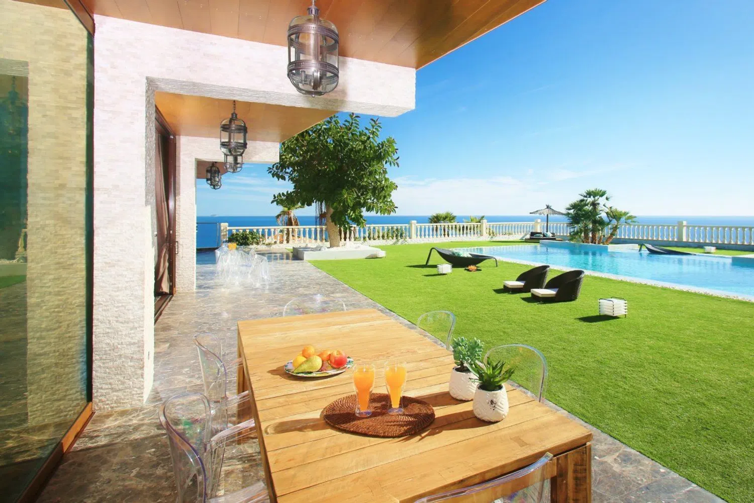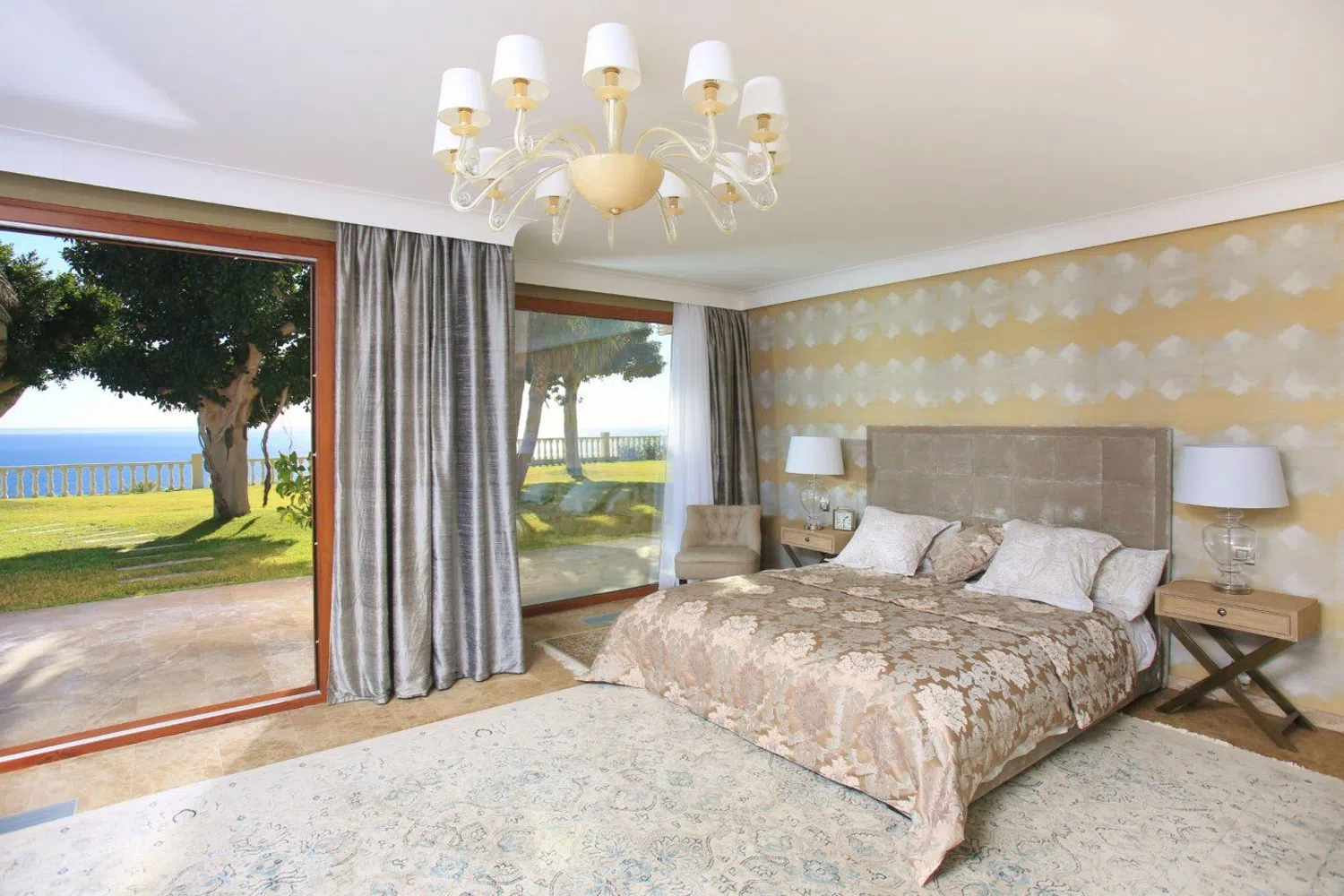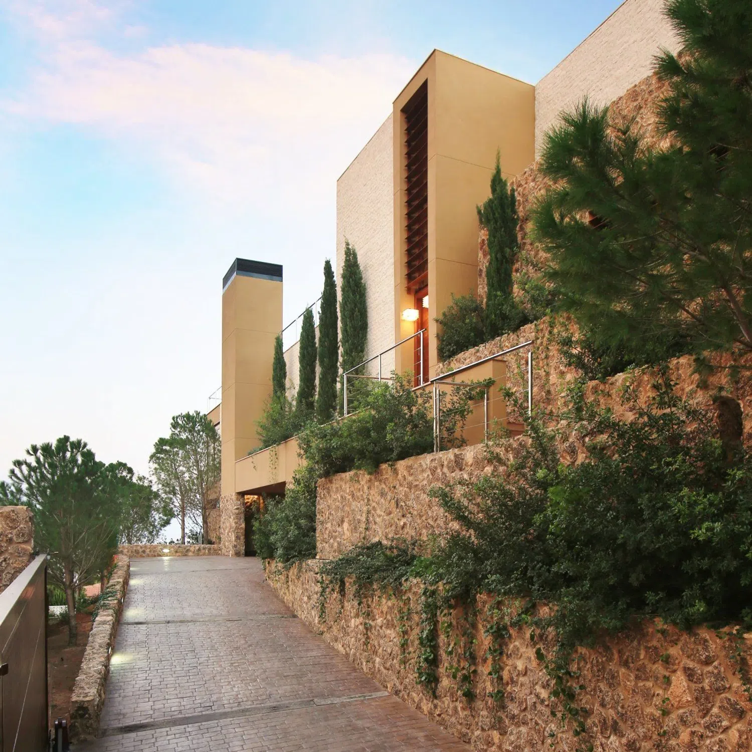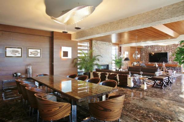La arquitectura que define esta vivienda es de primer nivel, combinando una estética moderna con tecnologías innovadoras. El uso de texturas naturales como el mármol y la madera se integra de manera armoniosa en el paisaje, generando un ambiente acogedor. Los espacios han sido cuidadosamente diseñados, incluyendo amplias salas de estar de concepto abierto, una bodega, cuatro grandes dormitorios, un gimnasio completo, sauna y baño de vapor, así como un apartamento de invitados con tres dormitorios.