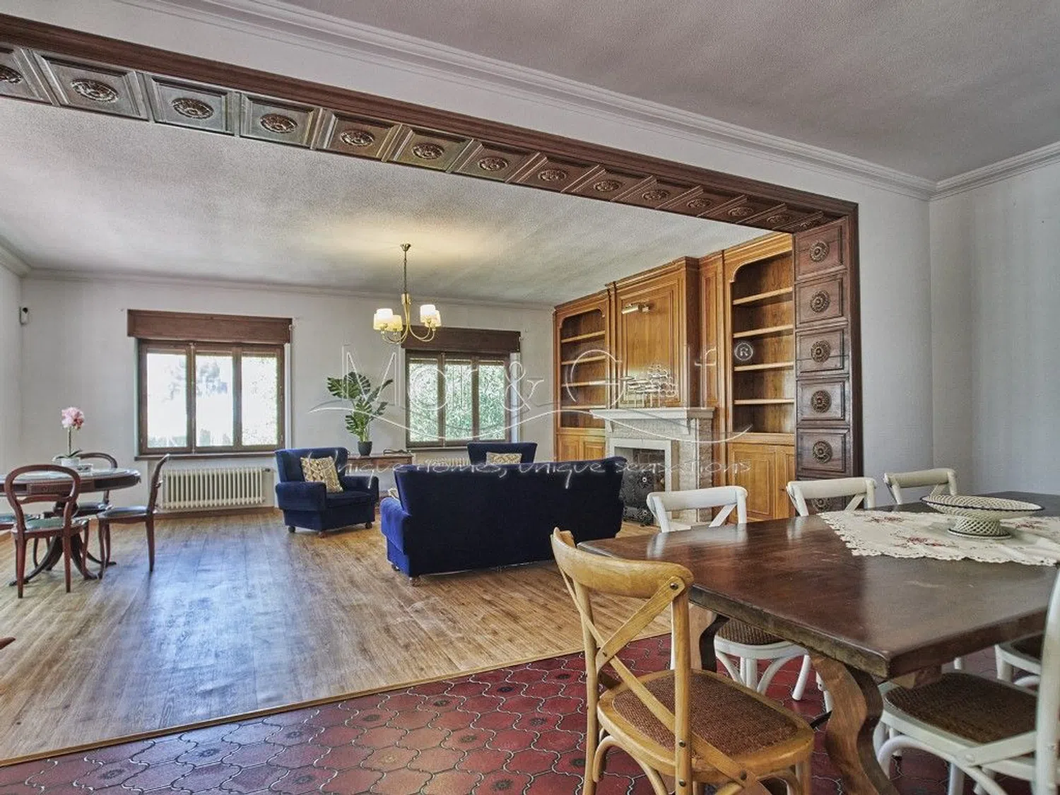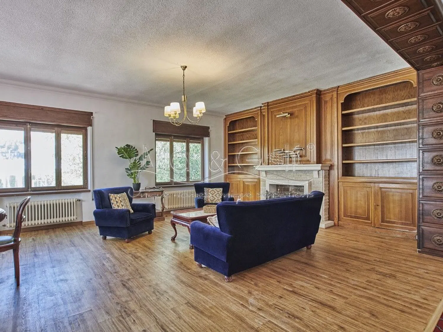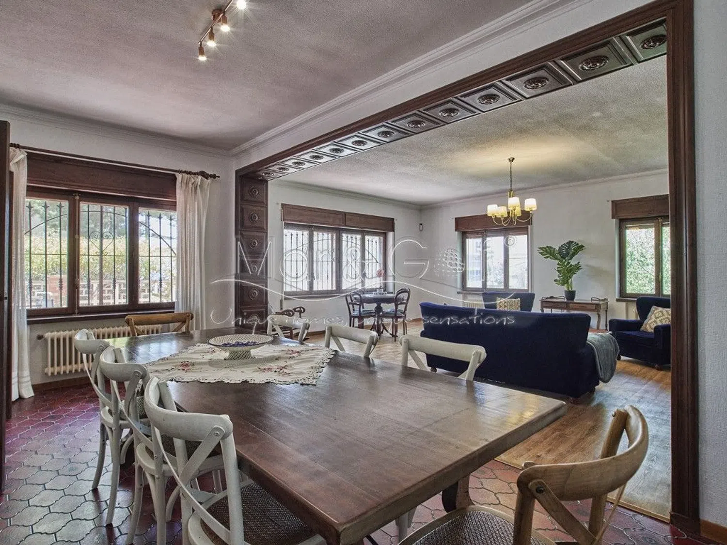 El semisótano, de 153 m², ofrece suficiente espacio para aparcar al menos cuatro vehículos, así como dos trasteros y un baño adicional con ducha. La propiedad está equipada con calefacción centralizada y ventanas de madera con persianas, garantizando un ambiente acogedor. Además, todas las estancias son exteriores, lo que proporciona abundante luz natural.