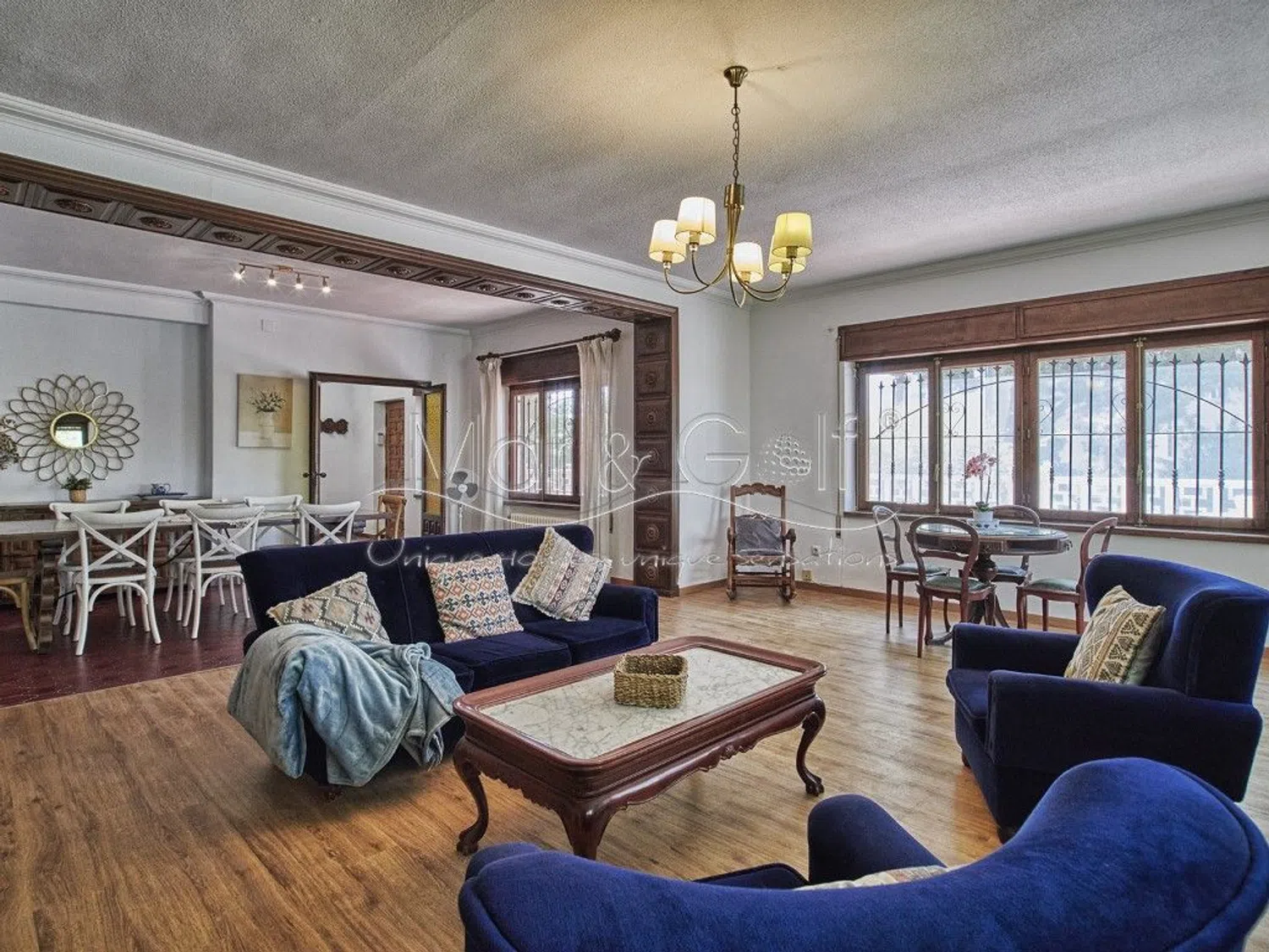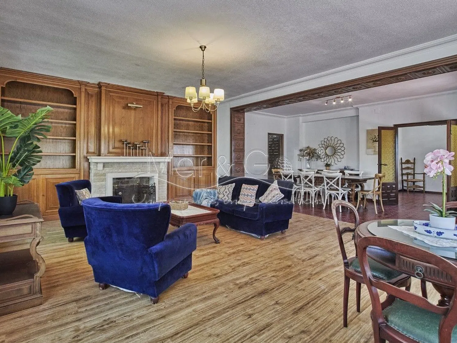 La planta principal alberga un espacioso salón-comedor con chimenea y suelos de madera, junto a una gran cocina equipada con galería y despensa. También cuenta con un baño completo en esta planta. En el nivel superior, se encuentran los cuatro dormitorios con armarios empotrados, otro baño completo y acceso a una soleada terraza.