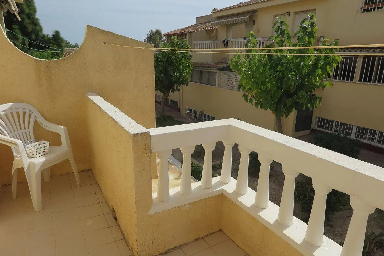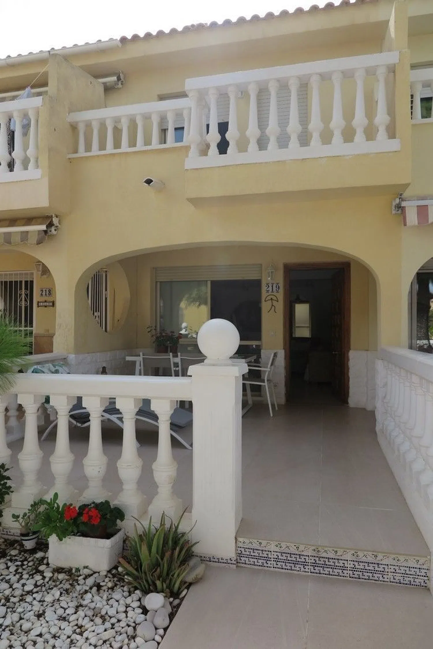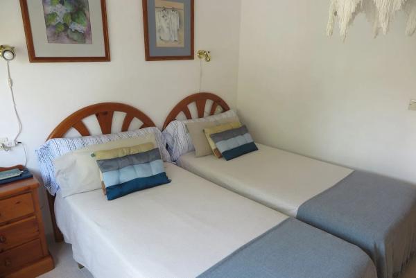 Encantadora casa adosada recientemente renovada en una deseada comunidad. La vivienda cuenta con dos habitaciones dobles, cada una con su propio balcón, un baño en la planta superior y un aseo adicional en la planta baja. La cocina está completamente equipada y ofrece un lavadero, además de un salón espacioso que se abre a un patio privado. La propiedad se encuentra en una ubicación privilegiada, con vistas al jardín central y a las hermosas piscinas de la comunidad.