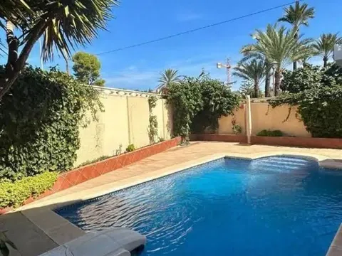 Este encantador chalet independiente, reformado, te ofrece privacidad y comodidad en una ubicación inmejorable, a tan solo 300 metros del mar. Con una parcela de 650 m², disfrutarás de un amplio jardín con piscina y una acogedora terraza para relajarte bajo el sol. La vivienda, distribuida en una sola planta, cuenta con 220 m² construidos y 200 m² útiles, incluyendo 4 dormitorios y 3 baños, ideales para acomodar a toda la familia. El interior destaca por su amplio salón con chimenea, perfecto para las noches de invierno, y una cocina completamente equipada que hará las delicias de cualquier chef. Además, dispone de una cocina de verano para disfrutar de las comidas al aire libre. El confort está garantizado con aire acondicionado y calefacción de butano. No te preocupes por el aparcamiento, ya que hay espacio para dos coches y un trastero para almacenar todo lo que necesites. Este chalet es ideal para personas con movilidad reducida y está en buen estado, listo para entrar a vivir. Con orientación sur-este, aprovecha al máximo la luz natural durante todo el día. No pierdas la oportunidad de vivir en este rincón de tranquilidad y lujo mediterráneo. ¡Ven a visitarlo y enamórate de tu nuevo hogar!