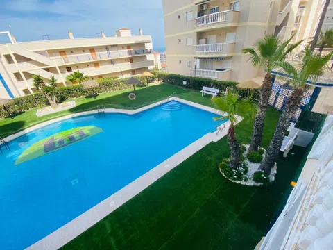 Abstenerse Agencias Inmobiliarias. Vendo piso reformado a nuevo en los Arenales del Sol, en Urbanización Privada muy cerca del mar. Un dormitorio, salón amplio con cocina y balcón. Zonas comunes con jardines, piscina abierta todo el año y vistas al mar. Acceso a terraza panorámica en la azotea del edificio.