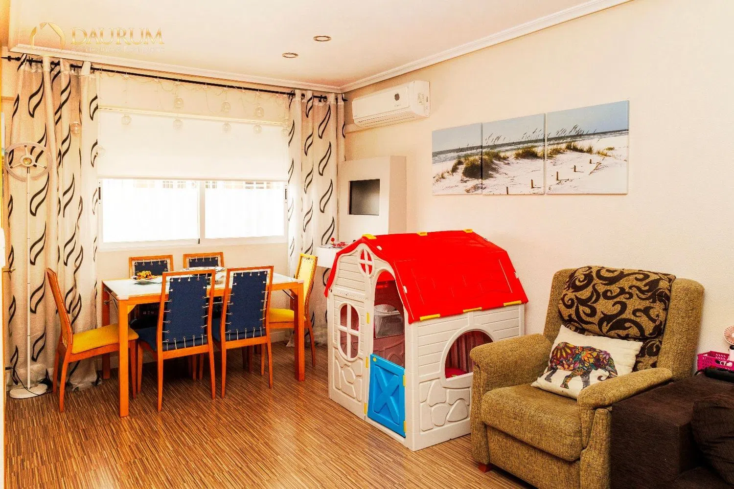 Daurum Alicante ofrece esta fantástica vivienda de 3 dormitorios en Elche (AL5-1057) 103m2 construidos y 88 m2 útiles. Orientación Norte. En la planta baja tiene 1 salón comedor, 1 baño con ducha, cocina con galería. En la primera planta tiene 1 habitación doble con armario empotrado y un pequeño mirador, 2 habitaciones individuales y 1 baño con bañera. Ventanas climalit doble cristal, puertas de madera, suelo de parqué y pintura gotelé. Garaje subterráneo. En los alrededores puede encontrar una variedad de servicios y puntos de interés. Hay bares, restaurantes, tiendas, farmacias y gasolineras cercanas. Además, la zona cuenta con museos, teatros, bibliotecas y un cine, lo que la hace ideal para actividades culturales y de ocio. A 2,5 kilómetros del centro de Elche. Unos 30 minutos caminando o menos de 10 minutos en coche. NO PIERDA ESTA OPORTUNIDAD Y CONTACTE CON NOSOTROS PARA REALIZAR UNA VISITA. Daurum Estate ofrece conseguir la mejor financiación a su medida hasta el 100% del valor de compra – venta sea nuestra la vivienda o no. INFORMACIÓN SIN COMPROMISO en el mismo número de teléfono del anuncio. Además, posibilidad de servicio de reformas para acomodar la vivienda a su gusto.