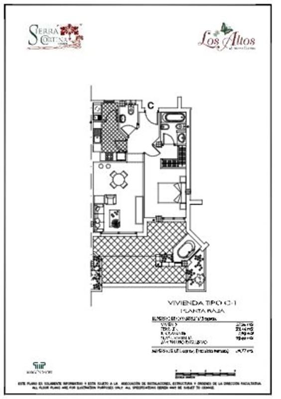 Apartamento en la urbanización Los Altos en Sierra Cortina Resort. Son 94 m2 distribuidos en 1 dormitorio, 2 baños, salón, cocina independiente y una gran terraza con parcela ajardinada prop...