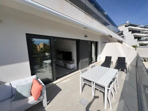 Descubra este magnífico y listo para entrar a vivir apartamento en la exclusiva y tranquila zona de Sierra Cortina, Finestrat. ¡Disfrute de lujo, confort y una ubicación inmejorable cerca de todos los servicios! Características: 2 amplios dormitorios y 2 modernos baños con suelo radiante Amplio salón con cocina abierta y acabados de alta calidad Gran terraza de 26m² con toldo eléctrico en todo el ancho Trastero adicional para lavadora y almacenamiento Aire acondicionado y paneles infrarrojos Iluminación LED ajustada en blanco cálido Persianas y estores en salón y dormitorios Instalaciones exclusivas del complejo: � Gran piscina para relajarse � Gimnasio, sauna, jacuzzi y tenis de mesa � Vestuarios y duchas para mayor comodidad � Dos plazas de aparcamiento cubiertas + amplio trastero � Jardín con sombra, bancos y barbacoa fija � Zona de juegos para niños Ubicación perfecta: � Cerca del Centro Comercial La Marina � Parada de autobús a solo 2 minutos a pie � A solo 5 minutos de las playas de Benidorm ⛳ A 5 minutos del campo de golf � Cerca de destinos turísticos como Villajoyosa, Altea, Albir, Calpe y Alicante ✈ A solo 35 minutos del aeropuerto de Alicante ¡Este precioso apartamento está libre de inquilinos y disponible para visitas de inmediato! No pierda esta oportunidad única. Call or WhatsApp: +32 499 258 799 or Email:.
