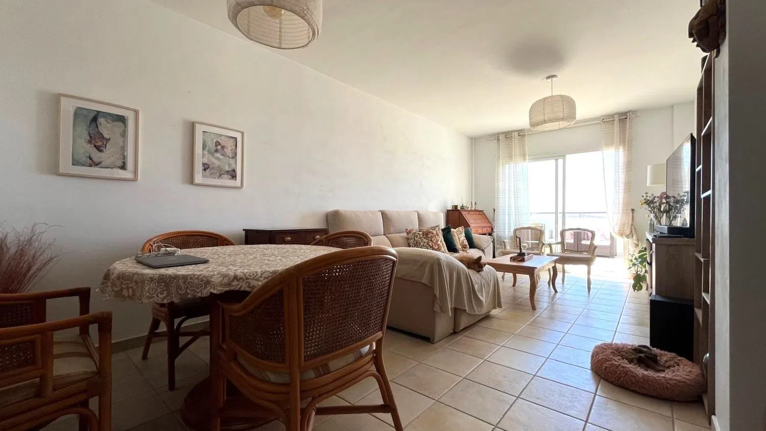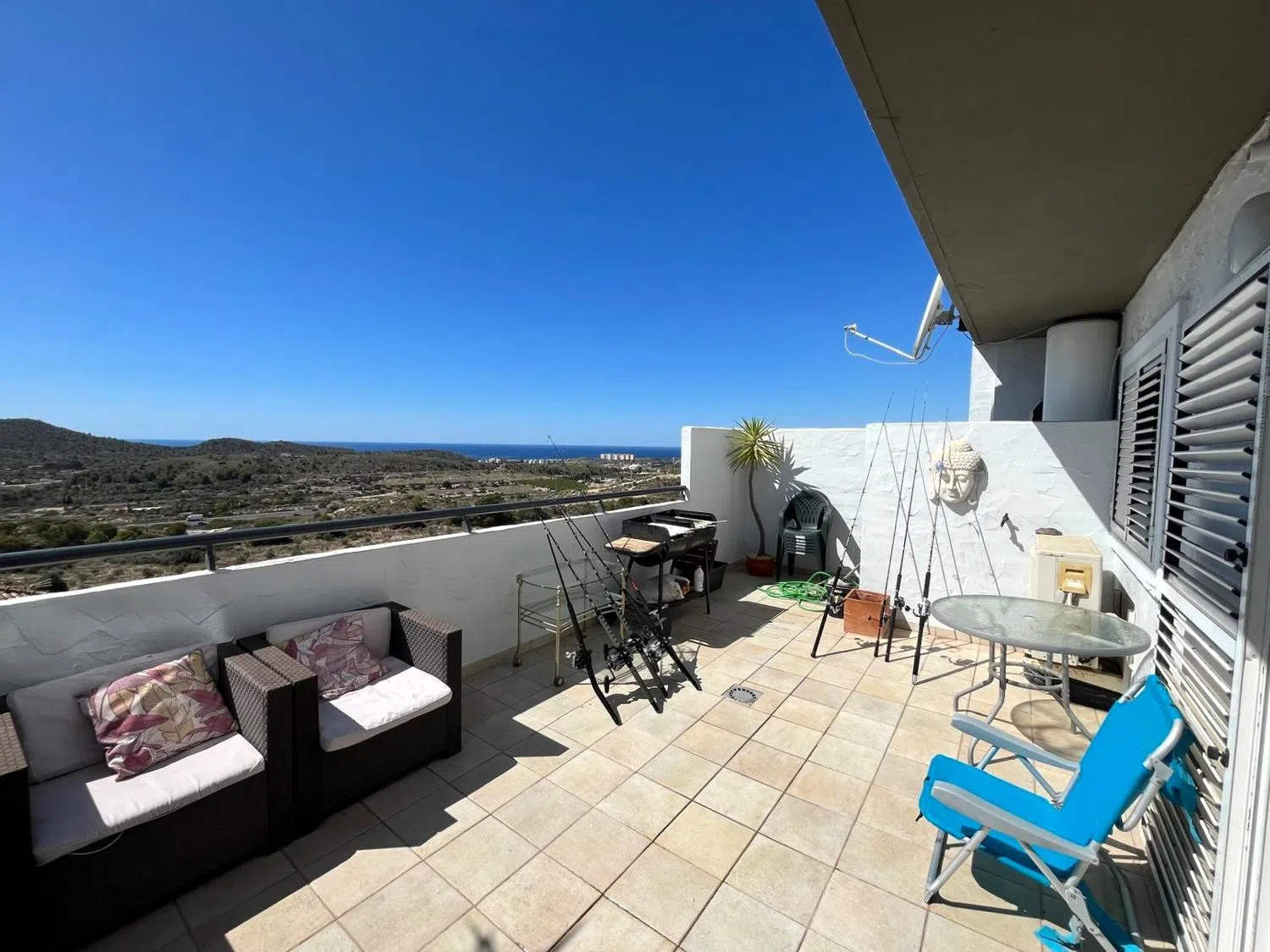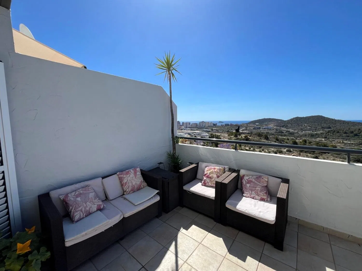 Apartamento en Finestrat con 89 m² y una amplia terraza de 22 m² que ofrece impresionantes vistas panorámicas al mar, abarcando desde el horizonte de Benidorm hasta Santa Pola. Su orientación sur garantiza luz natural durante todo el día. El apartamento cuenta con un espacioso salón, que se conecta directamente a la terraza y a una cocina de concepto abierto, creando un ambiente ideal para disfrutar con familiares y amigos. Desde la terraza, el salón, la cocina y el dormitorio principal se puede contemplar la belleza del horizonte y del mar.