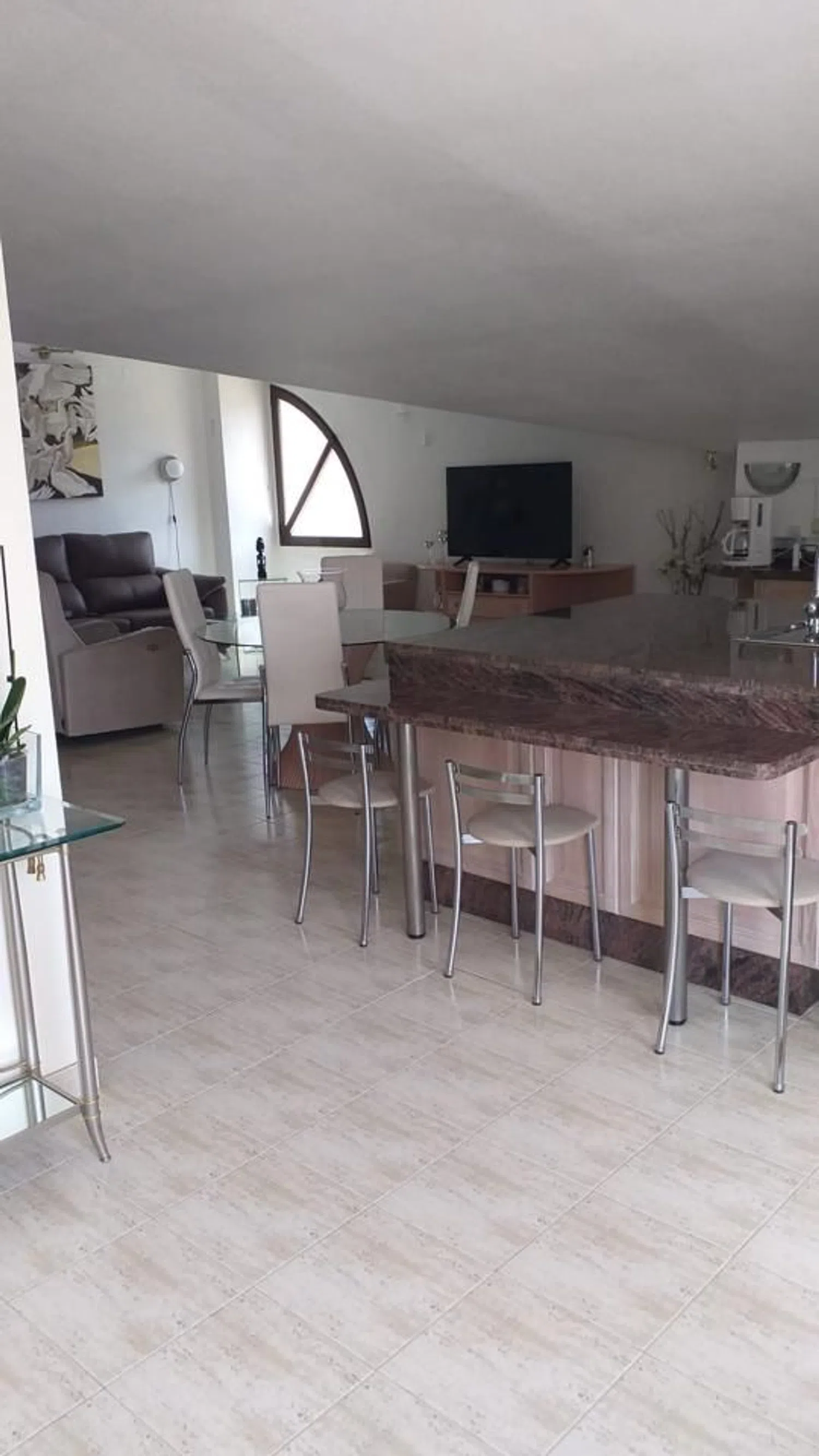 Impresionante ático de 136 m² con una espectacular terraza de 50 m², ubicado en una encantadora cala a solo 500 metros de la playa. La propiedad se distribuye en una cómoda planta y cuenta con tres amplios dormitorios, incluido un dormitorio principal con vestidor. Además, dispone de dos baños, uno de ellos en suite, un acogedor hall, una moderna cocina americana y un luminoso salón que se abre a la terraza. Este ático se presenta semi amueblado y ofrece hermosas vistas al mar y a la montaña, creando un ambiente idílico. La urbanización cuenta con piscina y se encuentra a poca distancia de todos los servicios esenciales, como supermercados, un centro comercial, farmacias, bares y restaurantes. Un rincón perfecto para disfrutar de la vida en la costa.