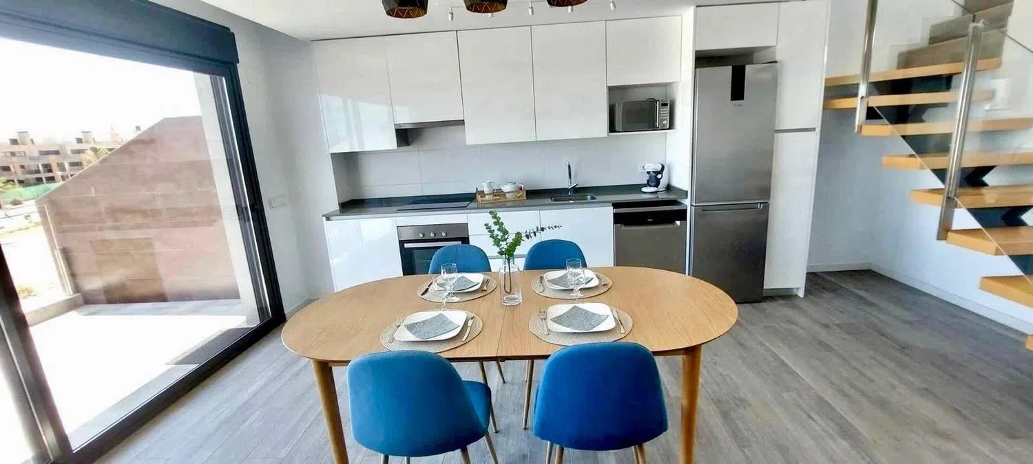El ático cuenta con 3 espaciosos dormitorios, perfectos para una familia o para recibir a invitados. Está amueblado con todo lo necesario, incluyendo electrodomésticos de última generación. El enorme solárium no solo es ideal para relajarse, sino que también permite la posibilidad de instalar un área para barbacoas, un jacuzzi o tumbonas, convirtiéndolo en un lugar perfecto para disfrutar del clima.