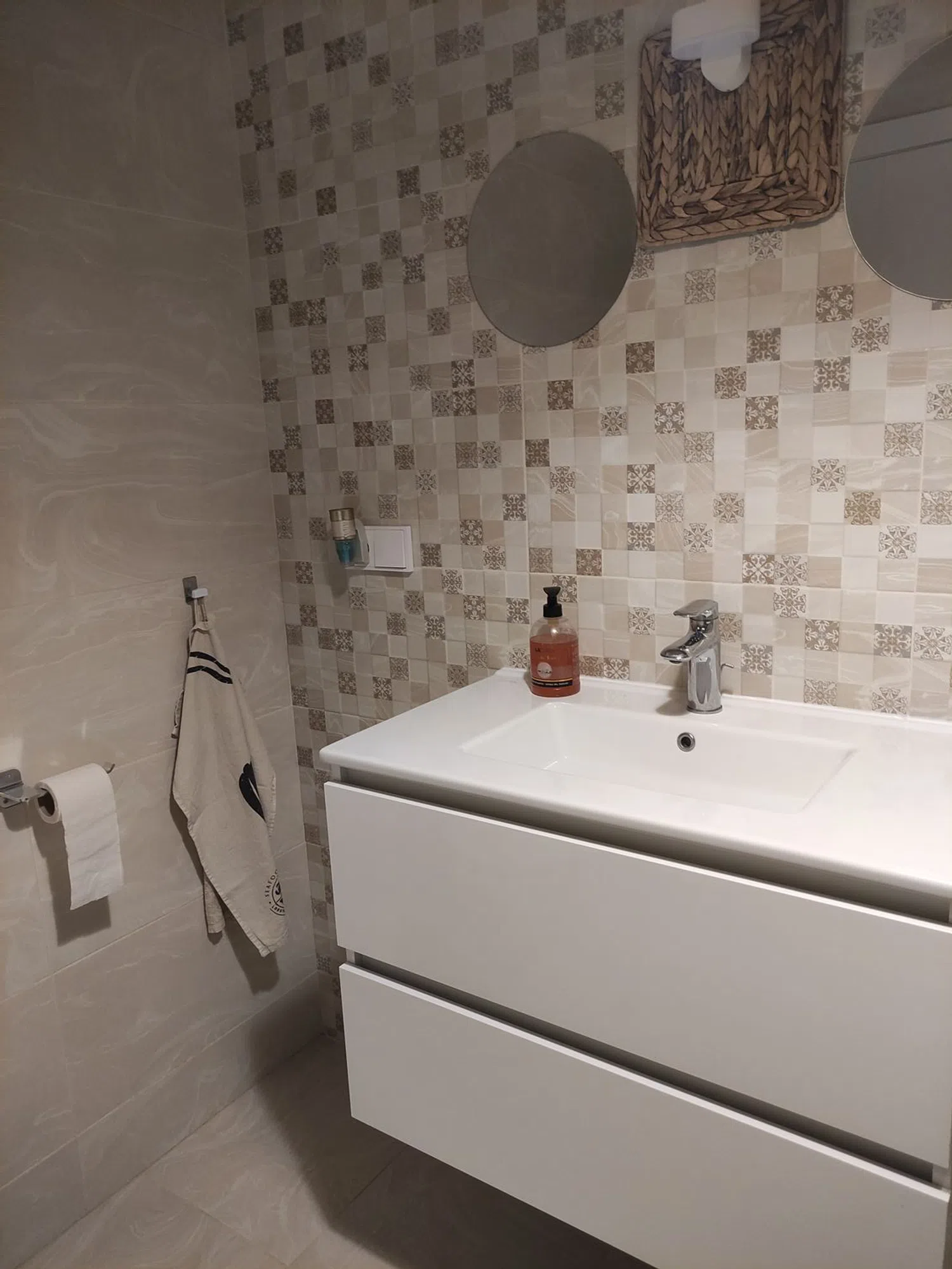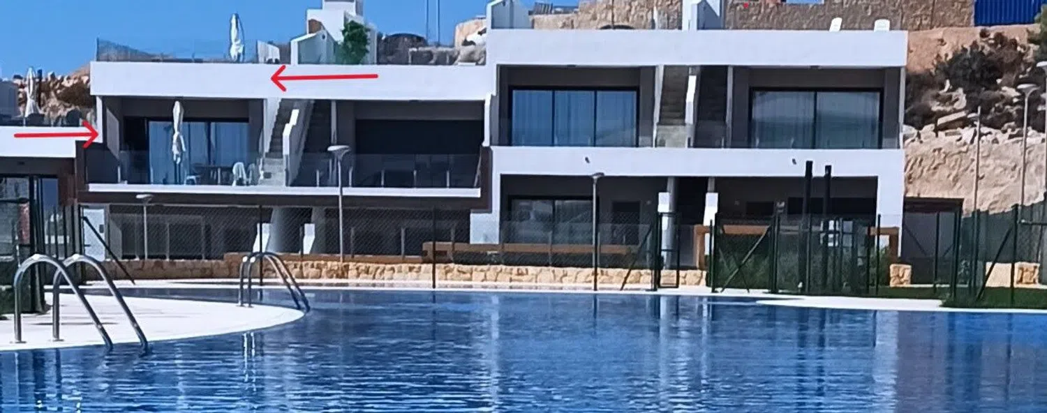 El apartamento destaca por su amplitud y una distribución funcional que maximiza el confort. Con una superficie total de 179,88 m², este espacioso dúplex está dividido en dos plantas, comenzando por una acogedora entrada en el primer piso. En esta planta, se ubican un luminoso salón con cocina abierta y acceso a una terraza de 21,15 m², así como dos cómodos dormitorios con armarios empotrados y dos cuartos de baño completos que incluyen inodoro, ducha y lavabo. Desde la terraza, un elegante acceso de escaleras lleva al solárium de 84,83 m², donde se puede disfrutar del sol durante todo el año bajo una pérgola diseñada para el relax.