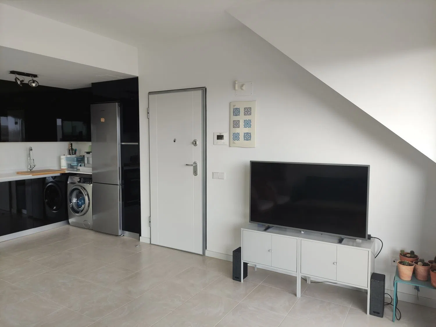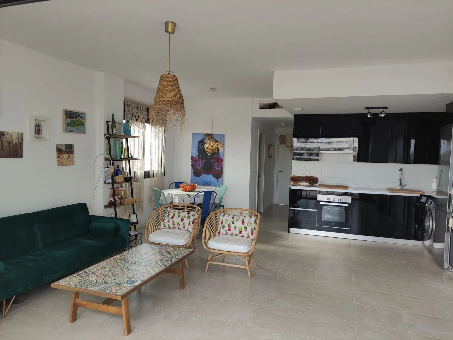 El apartamento está disponible para la venta amueblado, lo que brinda la oportunidad de disfrutar de un hogar listo para habitar. Entre los muebles se incluye un sofá, que también se convierte en cama, un mueble de televisión, una mesa de comedor con sus sillas, dos sillones y una cama doble con colchones en el dormitorio principal. Además, se incluyen electrodomésticos como una lavadora y un frigorífico de marcas reconocidas, así como diversas mejoras en la decoración y los textiles, todos adquiridos después de agosto de 2020 y con garantía vigente.