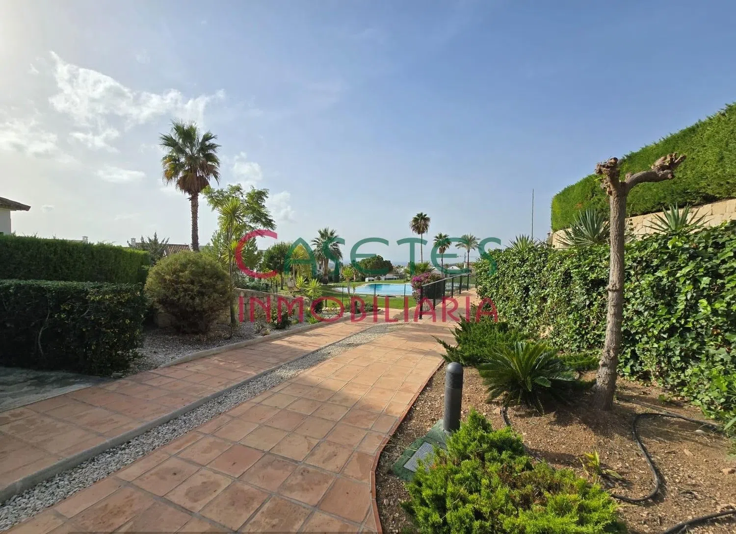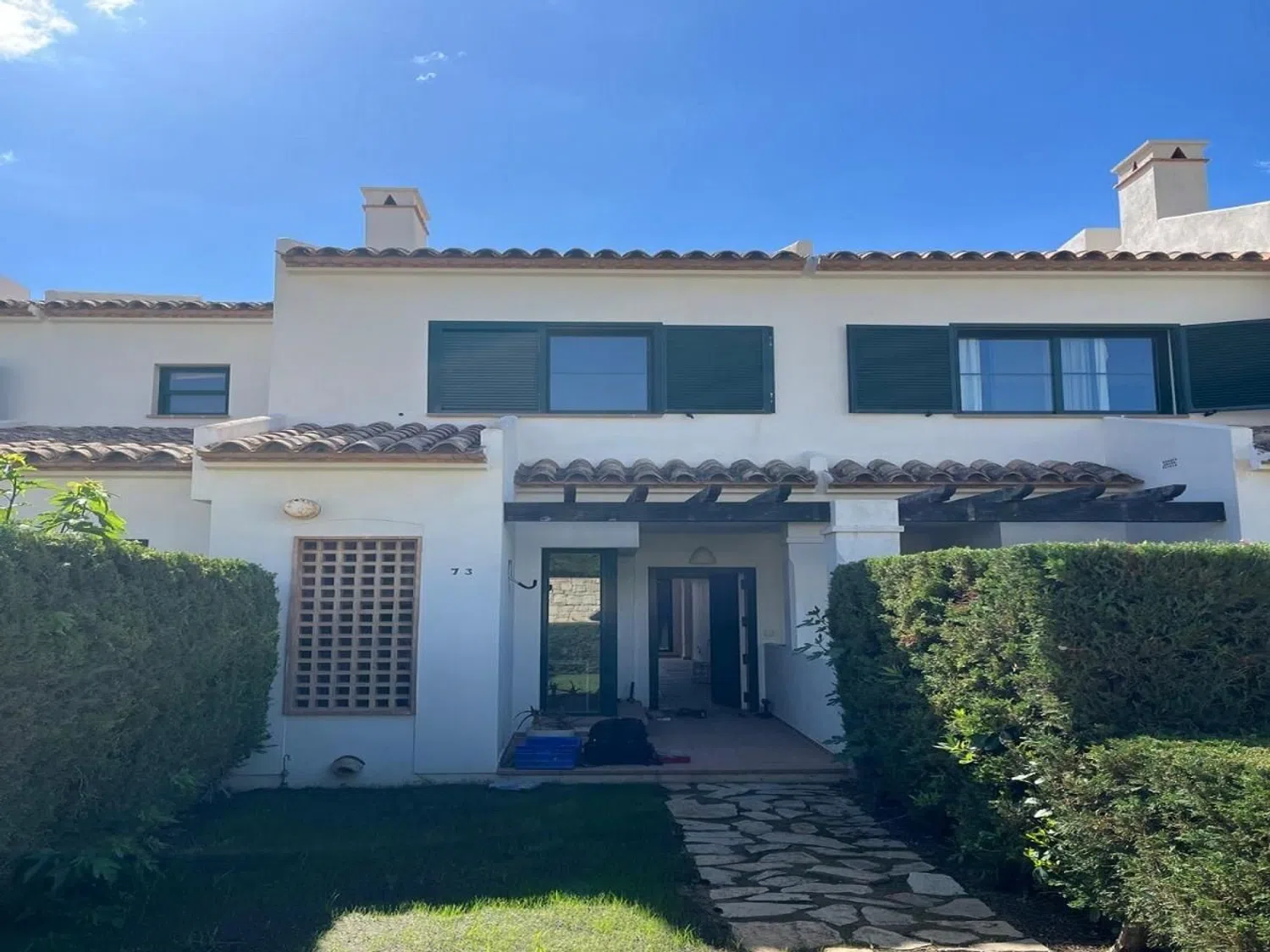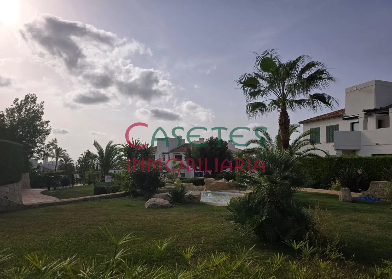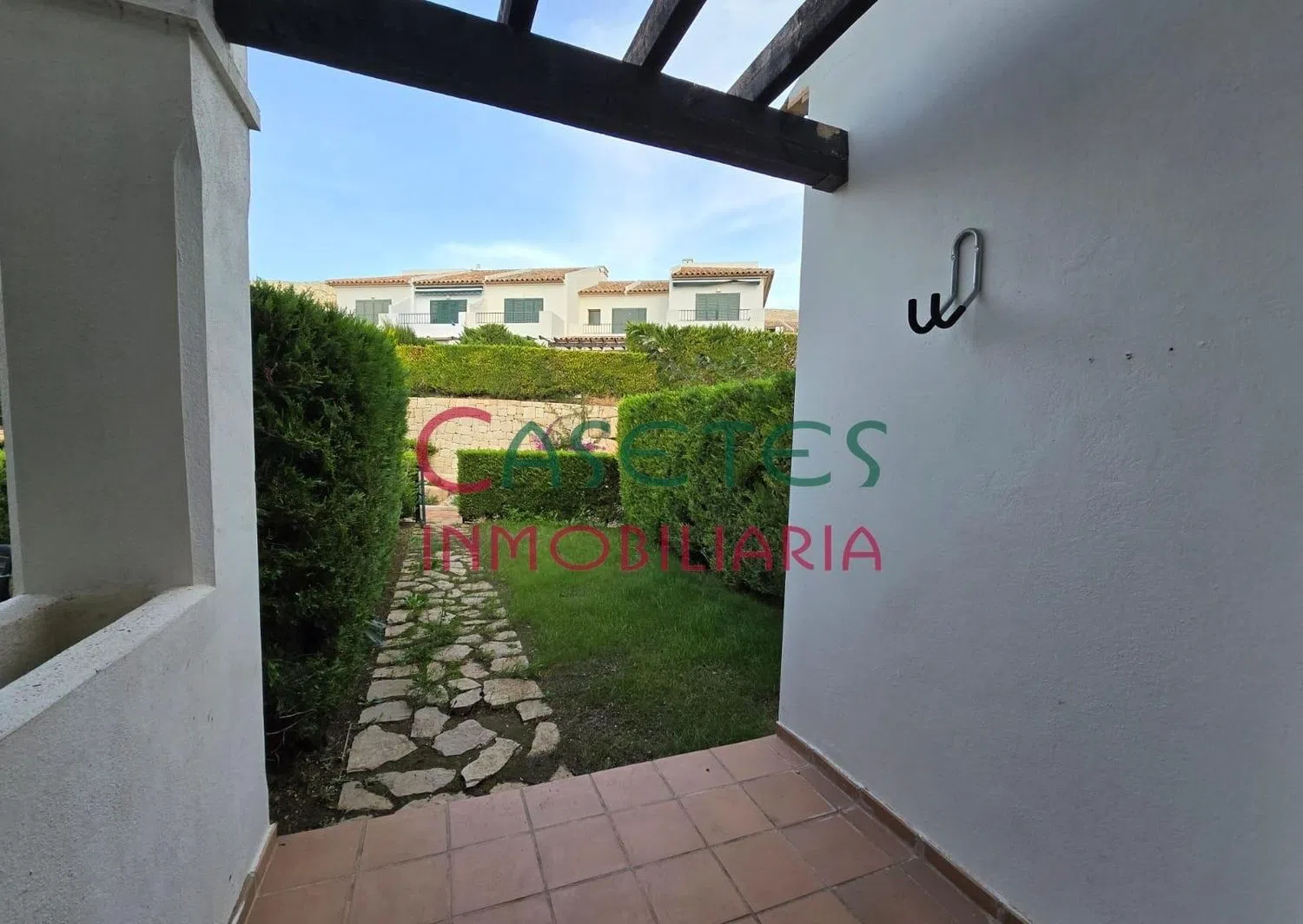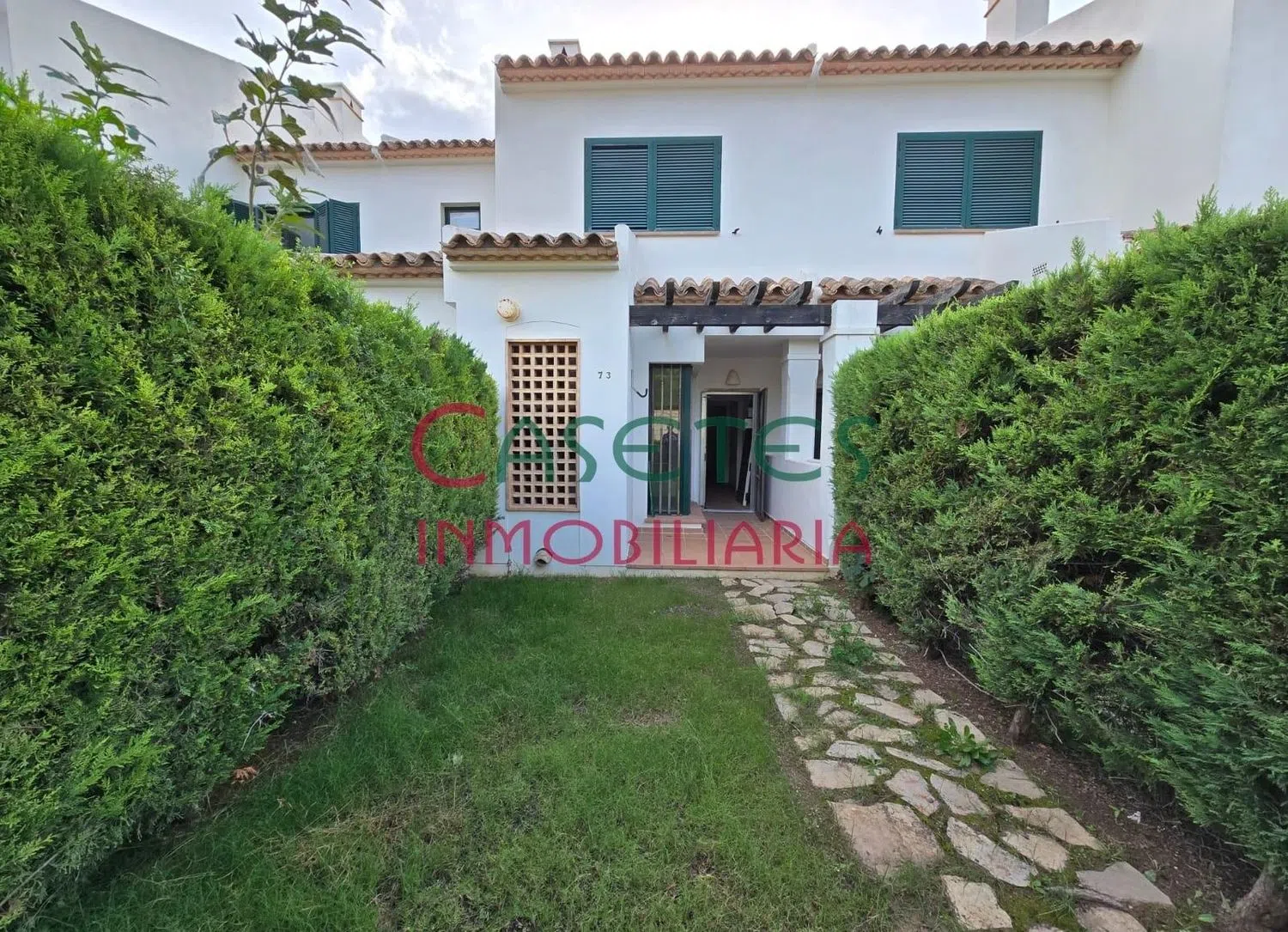 La escalera te llevará a la planta superior, donde se ubica el dormitorio principal con baño en suite, un segundo dormitorio doble, otro baño general y una terraza adicional, perfecta para relajarse al aire libre. La propiedad también dispone de aparcamiento en la urbanización, zonas ajardinadas y una piscina comunitaria que invita al descanso.