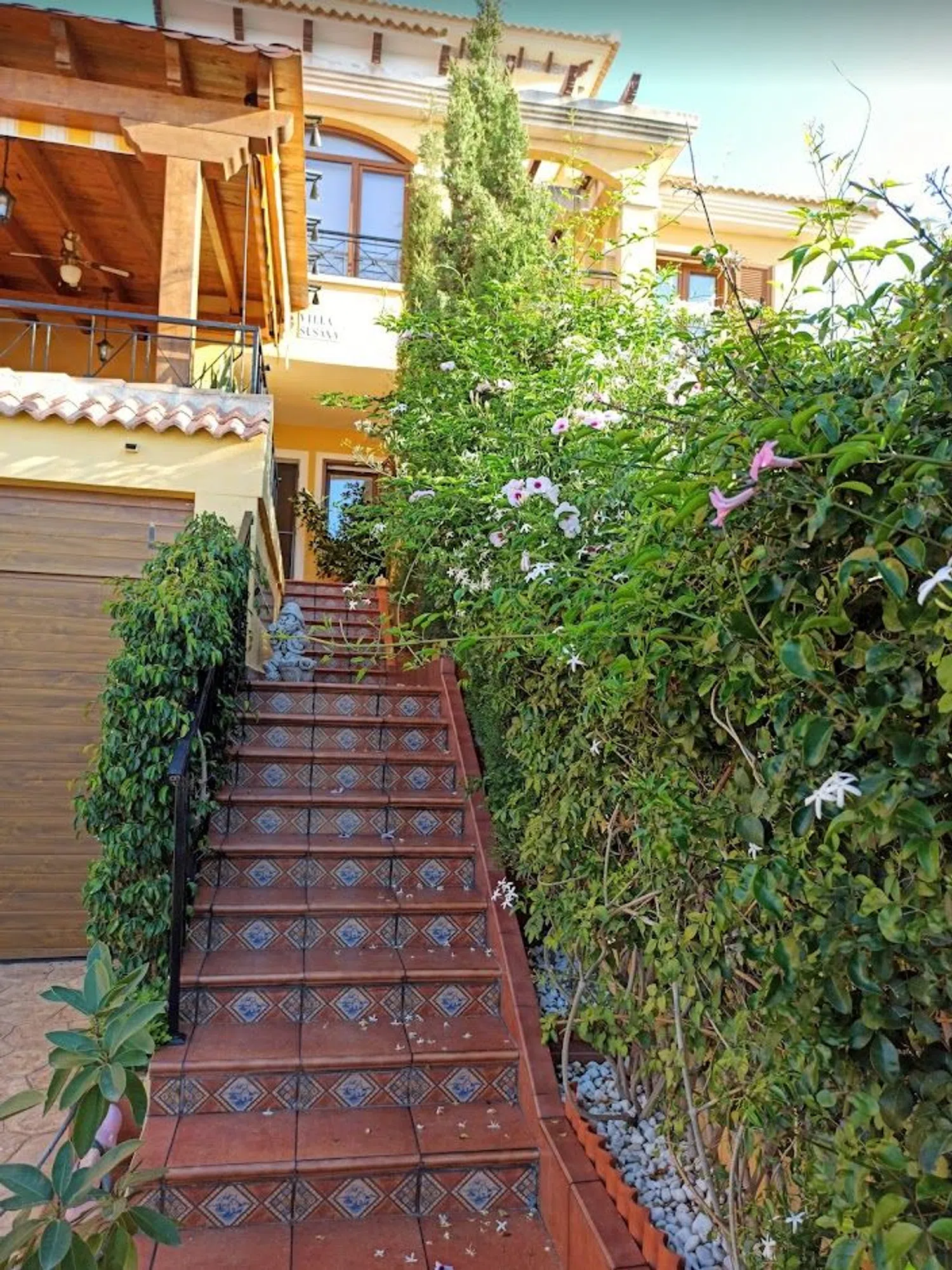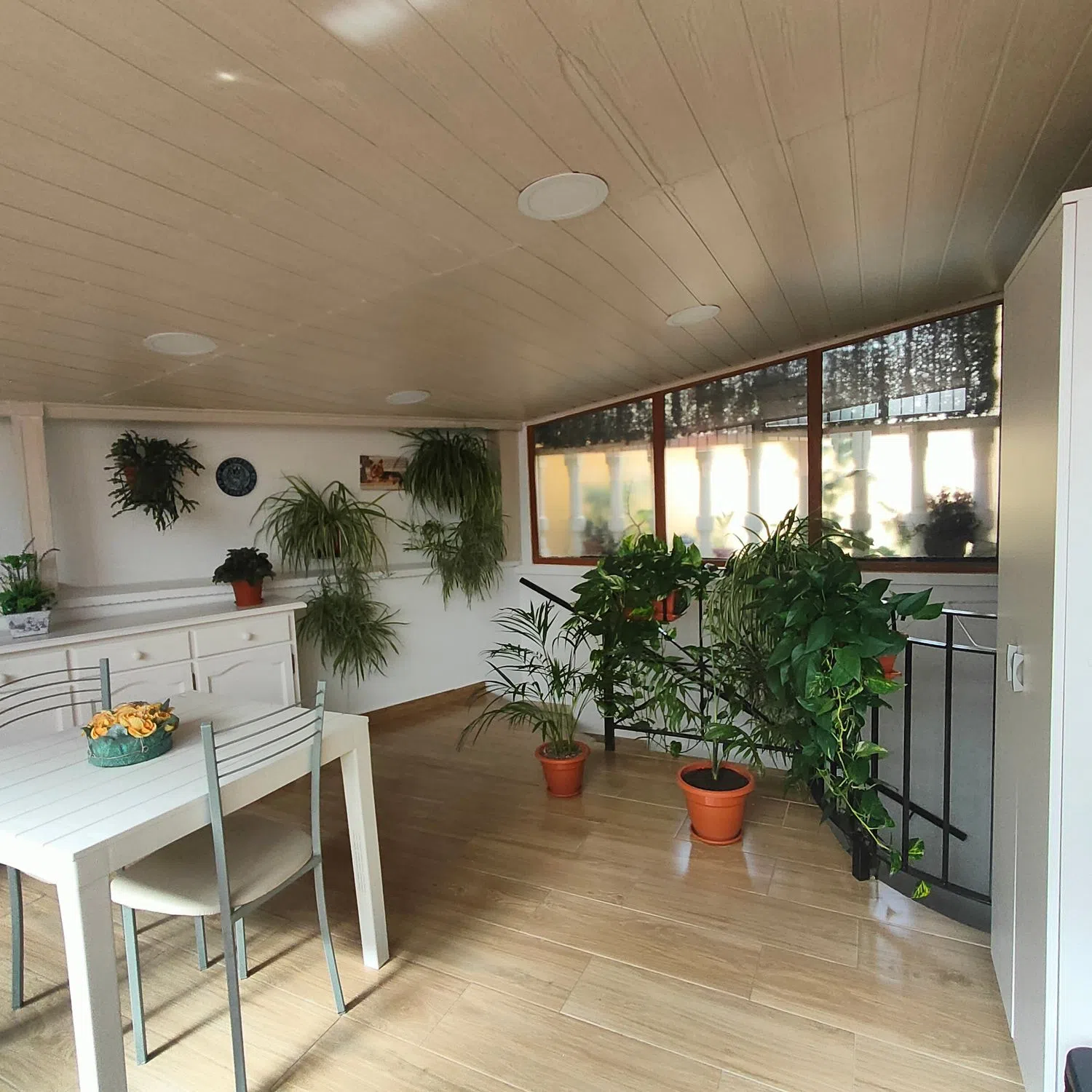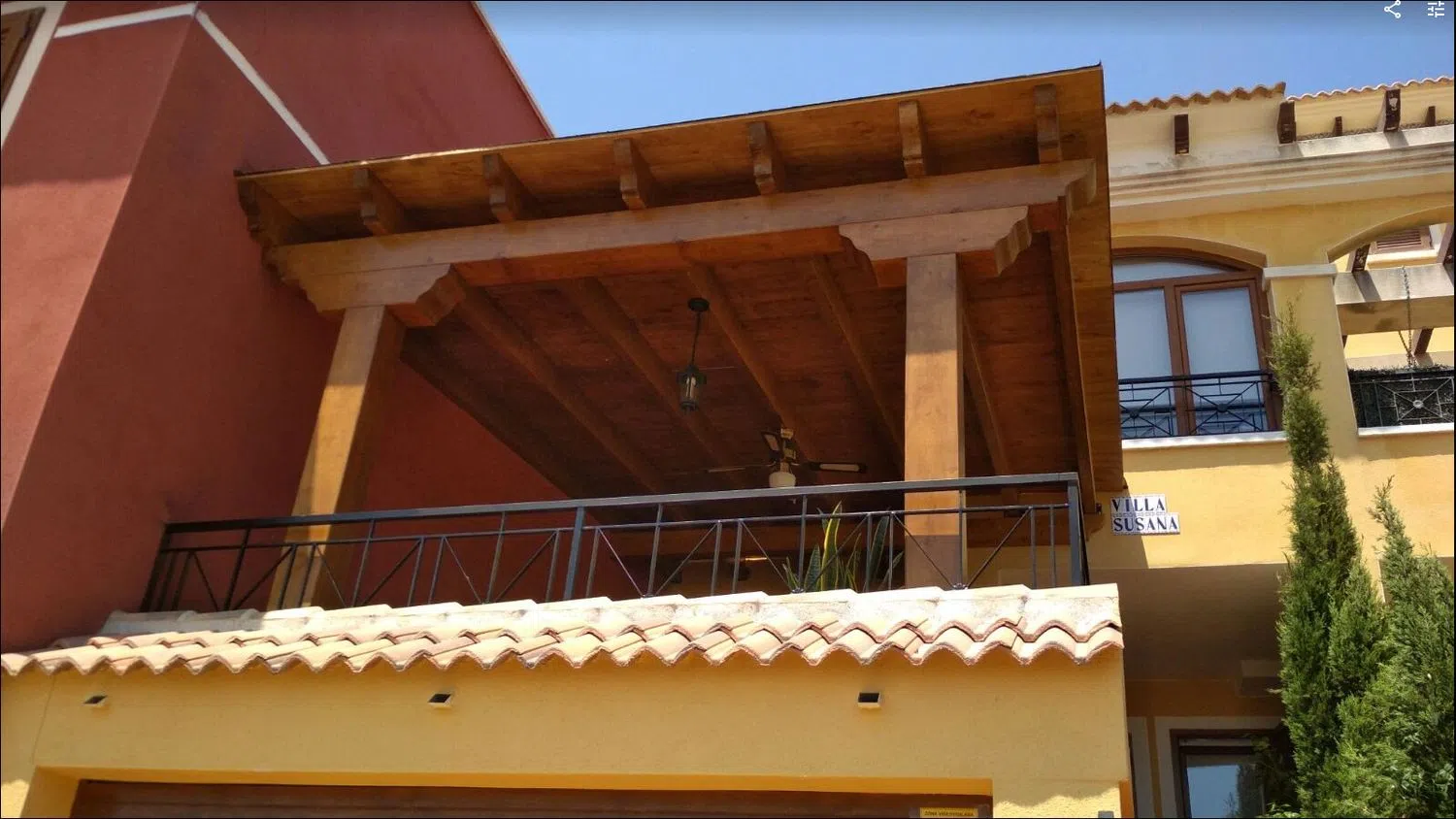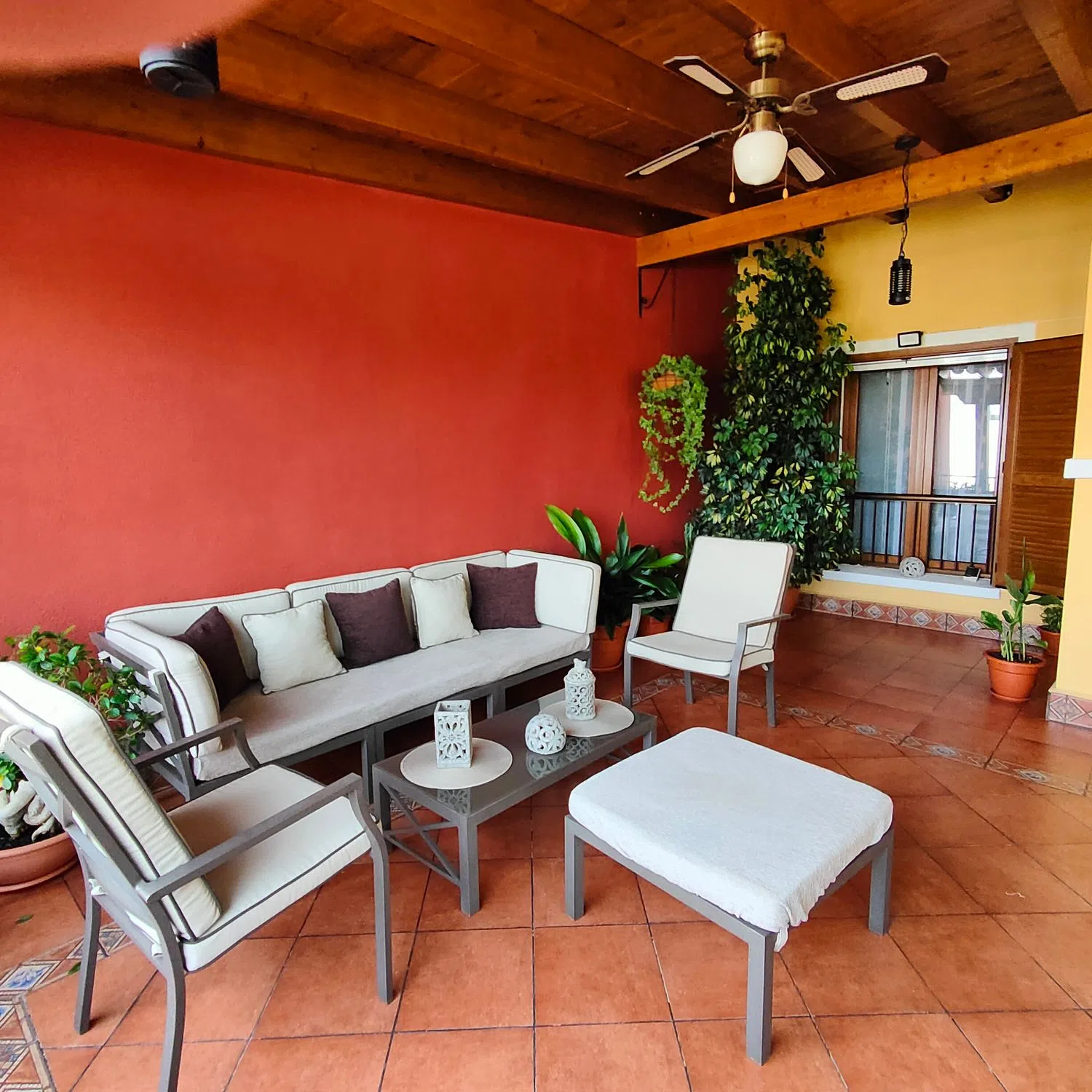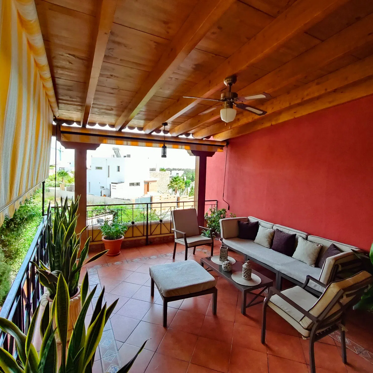 Disfruta del espacio exterior con un patio cerrado que añade privacidad y tranquilidad, así como de una encantadora terraza equipada con una pérgola de madera y toldos, ideal para disfrutar de las tardes al aire libre.