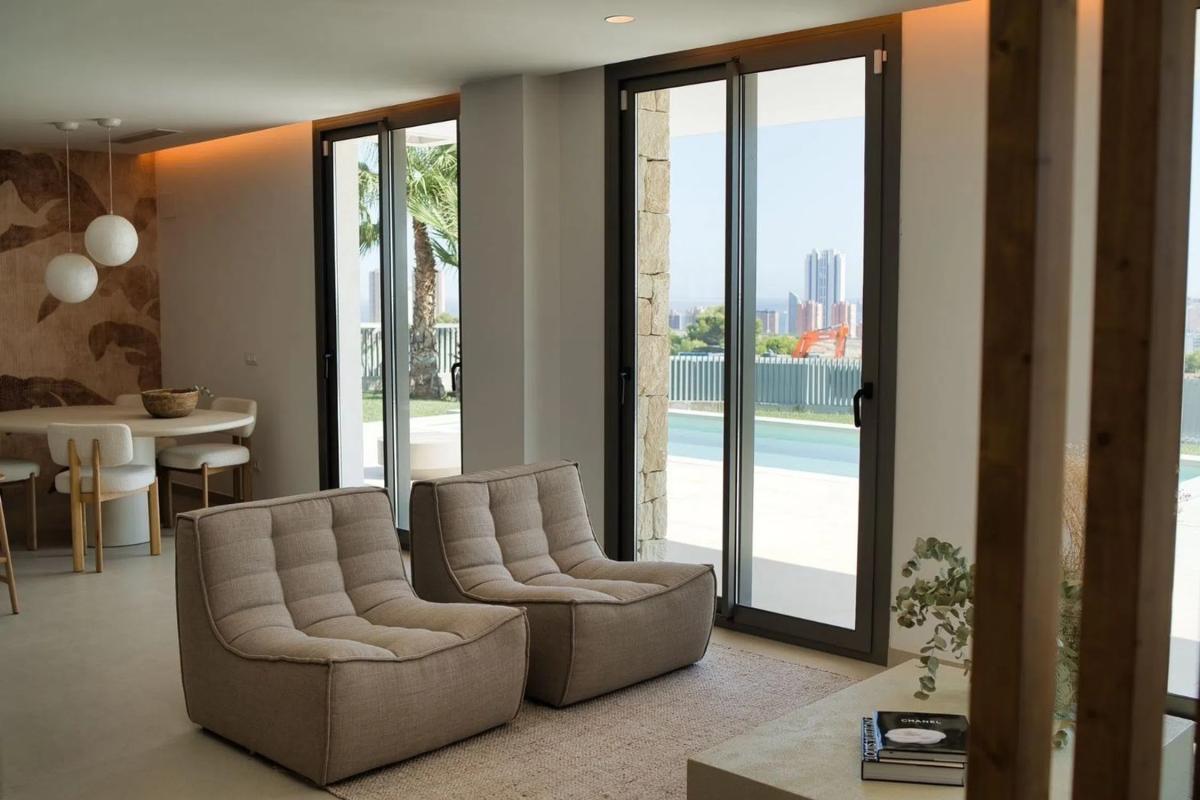Un estilo mediterráneo en el corazón de Sierra Cortina. Un enclave único, rodeado de naturaleza, a solo unos minutos de Benidorm y de sus playas de aguas cristalinas. La primera fase de Costabella Residences ofrece 11 exclusivas villas unifamiliares, seguida de una segunda fase con 19 residencias adicionales. Todas están cuidadosamente diseñadas, con orientación sur, piscina privada y, en determinadas tipologías, garaje subterráneo. Las villas, de 3 y 4 dormitorios, cuentan con baño en suite en cada habitación y un aseo adicional de cortesía. Su cocina abierta con península está totalmente equipada y se integra con la zona de día, donde destacan los amplios ventanales que inundan los espacios de luz natural y ofrecen espectaculares vistas a Benidorm, al mar y a la montaña. Cada vivienda dispone de piscina privada y plaza de aparcamiento o garaje subterráneo, combinando confort, diseño y exclusividad en pleno pulmón verde de Sierra Cortina.