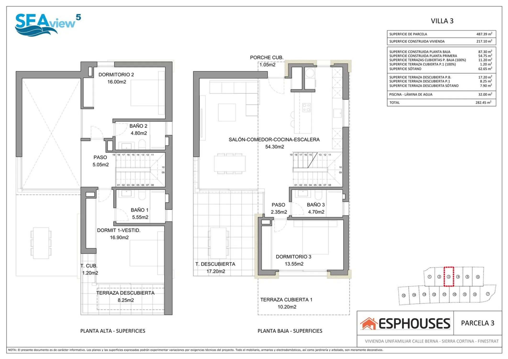 Vivir entre el mar y la montaña, en la Urb. Sierra Cortina y a pocos minutos de Benidorm, tiene nombre: Residencial SEAVIEW 5. Allí puede adquirir una villa de obra nueva con piscina y jardín privados. Las villas disponen de 3 dormitorios, 3 baños, salón - comedor y cocina “open concept”. La cocina se entrega amueblada y con la placa de inducción y la campana extractora instaladas. Cuentan con preinstalación de aire acondicionado frío y calor e instalación de domótica. Como en todas las promociones de ESPHOUSES, en SEAVIEW 5 se han empleado los más altos estándares de calidad y se han empleado equipamientos y materiales de la máxima calidad y de marcas como Florim, Villeroy & Boch, Hansgrohe, Bosch, BTicino, Cortizo o Blum. La Urb. Sierra Cortina es una de las zonas más exclusivas y más demandadas en todo el Mediterráneo español. Su ubicación en plena naturaleza, y a pocos minutos del ocio, los servicios y el comercio de Benidorm, la hacen muy atractiva para aquellos que buscan un lugar donde vivir, aquellos que buscan una segunda residencia, o aquellos que desean invertir para alquilar. SEAVIEW 5 es una promoción inmobiliaria de ESPHOUSES, empresa con años de experiencia en la construcción y comercialización de viviendas en la Costa Blanca.