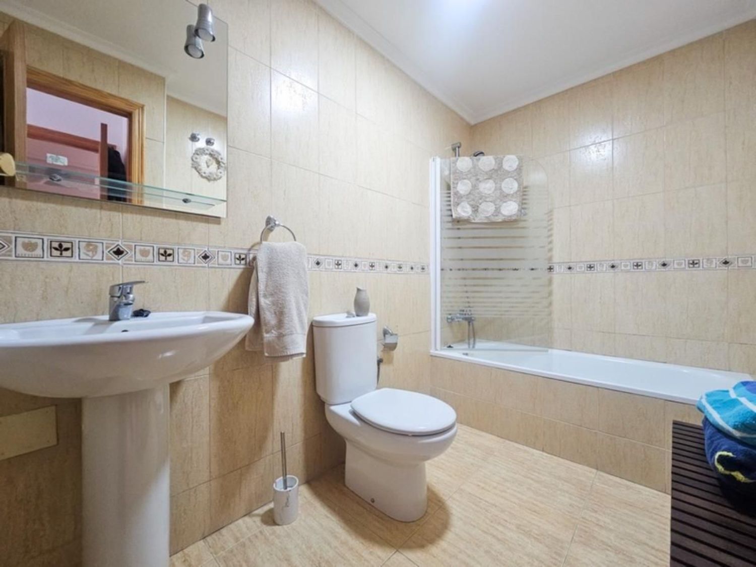 Se presenta un encantador apartamento en planta baja, situado en una ubicación privilegiada. Este espacio cuenta con dos amplios dormitorios dobles y dos baños, uno de los cuales es en suite, ideal para mayor comodidad. La zona de salón-comedor es luminosa y acogedora, y la cocina independiente ofrece todo lo necesario para disfrutar de la gastronomía local.