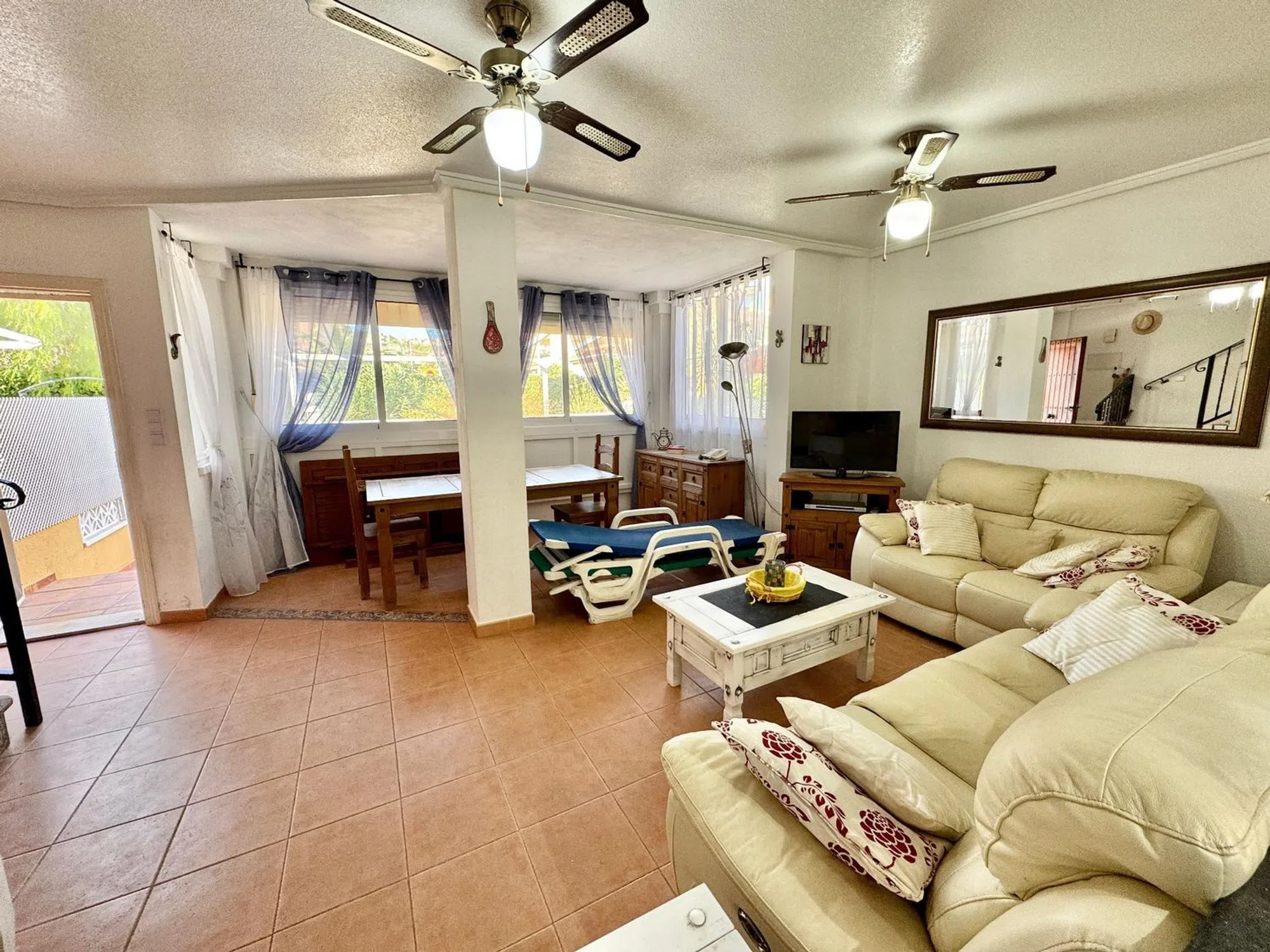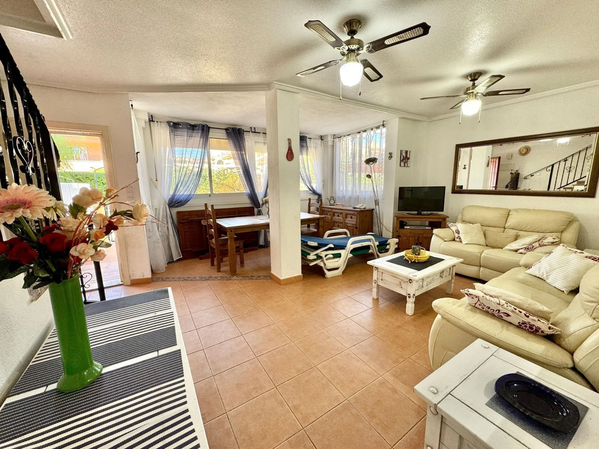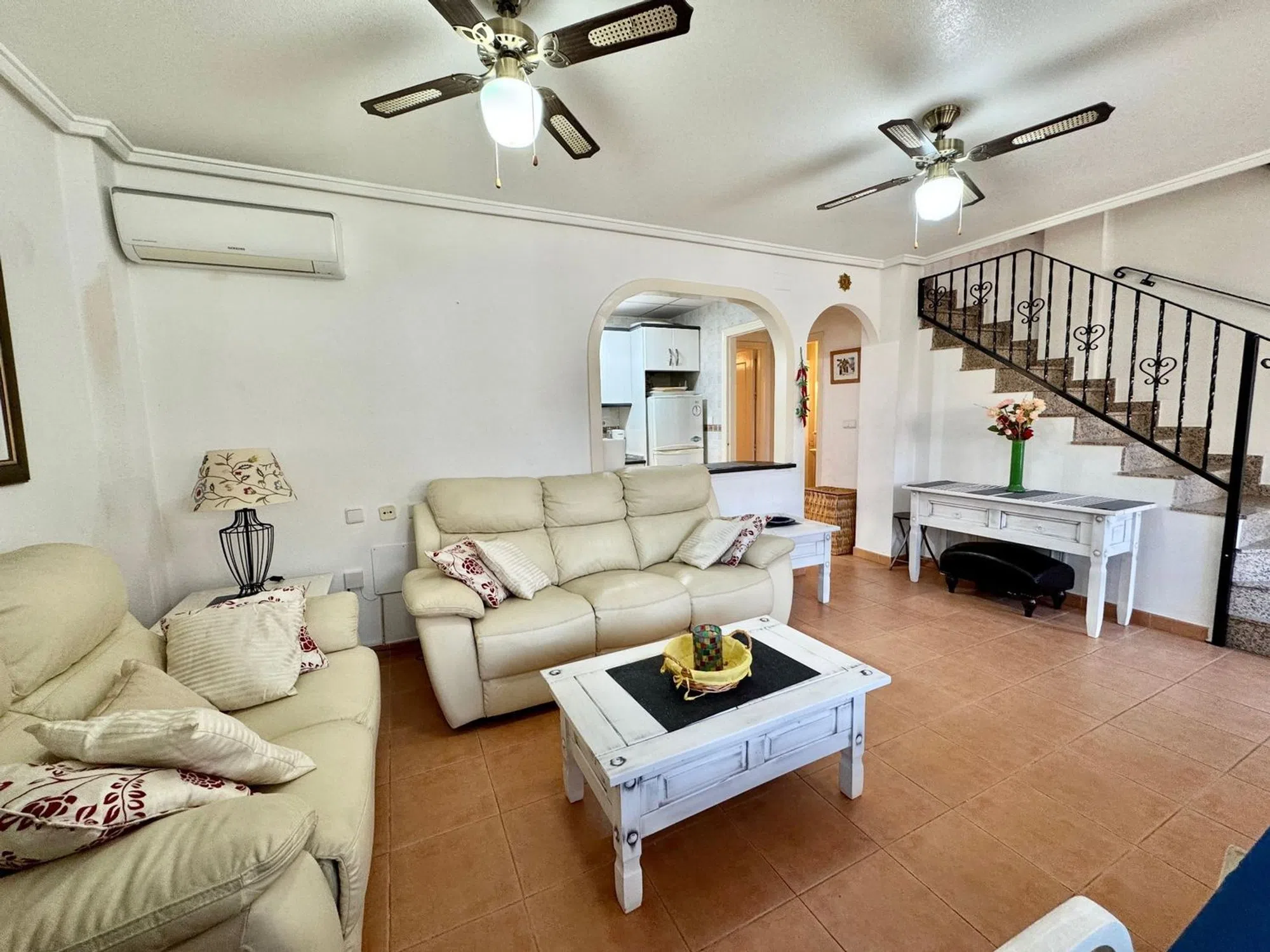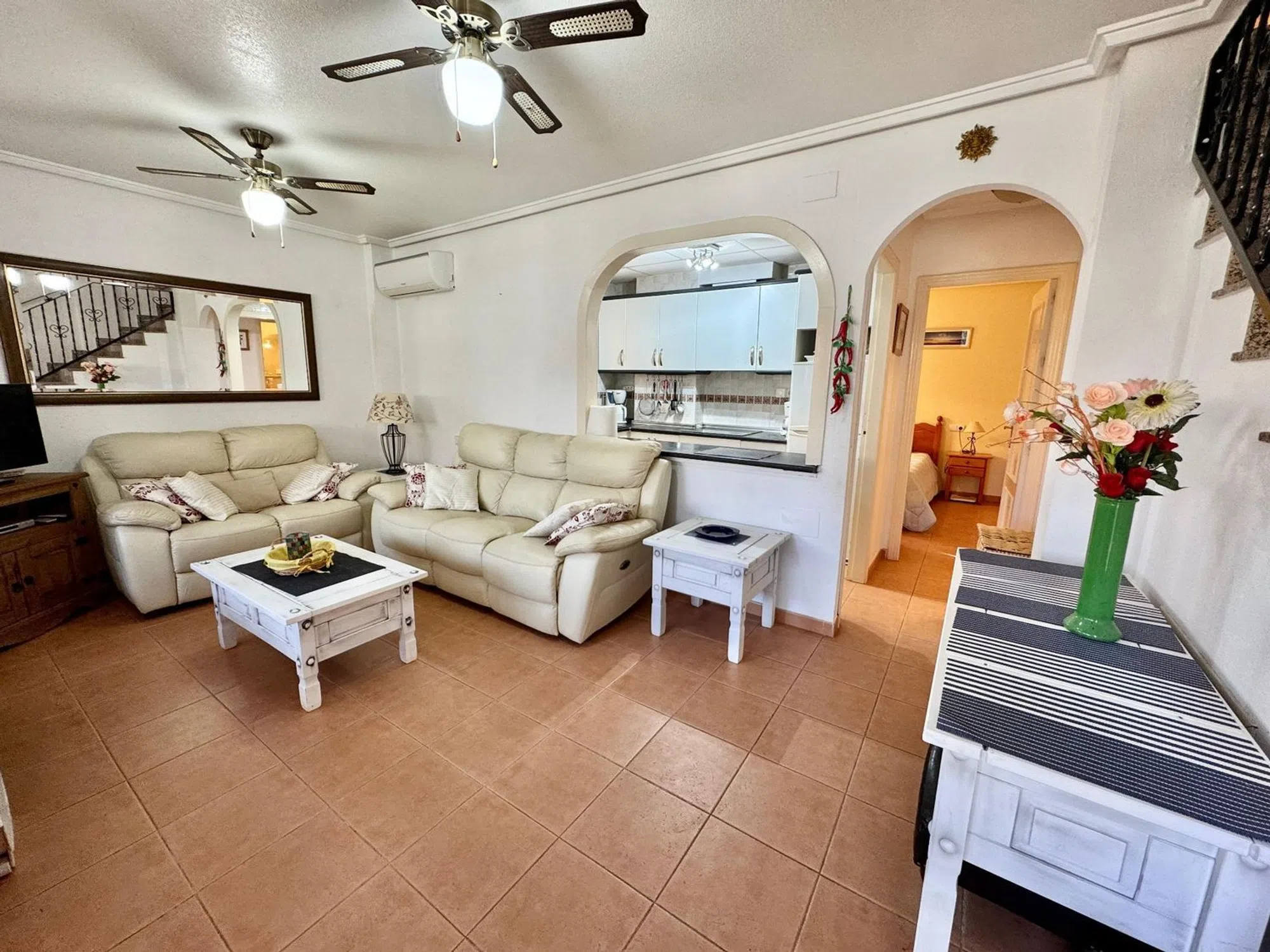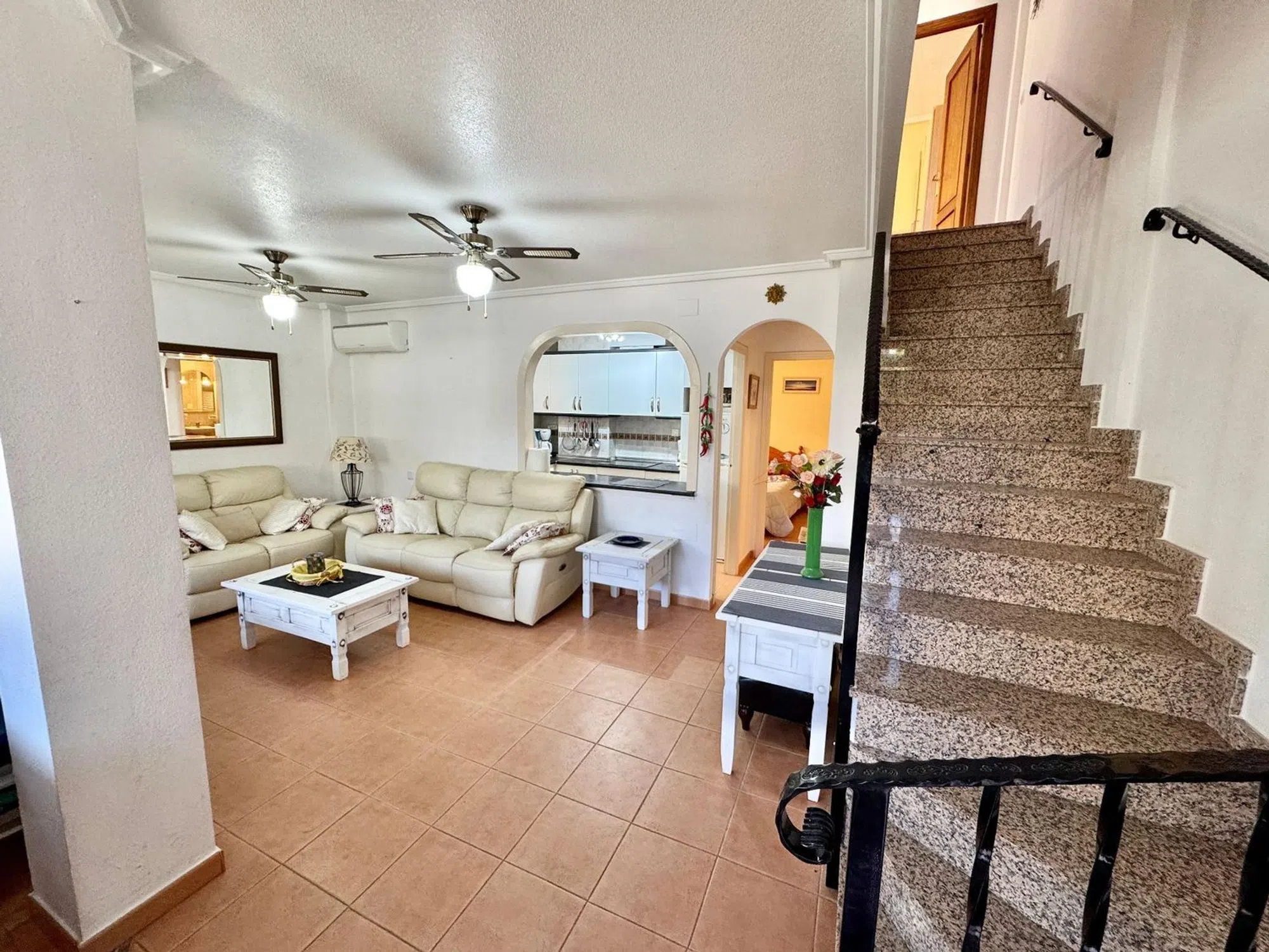 Amplio dúplex situado en la parte baja de Gran Alacant, en la urbanizacion privada Costa Hispania. La urbanizacion tiene cuatro piscinas, canchas de tenis, pádel, fútbol y baloncesto y de un club social y restaurante propio y a tan solos a unos metros de la playa del Carabassi y a 10 mn en coche del aeropuerto de Alicante. La vivienda consta de planta baja y planta alta, comunicadas entre si por escalera interior. En la planta baja tenemos una amplia terraza-jardin que hace esquina con su barbacoa, entramos en la vivienda donde estan el salón-comedor, cocina americana equipada, un cuarto de baño con ducha y un dormitorio. En la segunda planta estan los dos otros dormitorios, un cuarto de baño con bañera y ventana, y su terraza donde podra disfrutar del sol durante todo el año. Tiene una plaza de garaje abierta numerada incluida en el precio. Aire acondicionado frio y calor en la vivienda. Esta propiedad combina una ubicación privilegiada, a pocos minutos de la playa, en un entorno exclusivo y bien cuidado. Una vivienda perfecta para vivir todo el año, disfrutar de vacaciones o invertir, en una de las zonas residenciales más completas de Gran Alacant. Nuestra agencia inmobiliaria está orgullosamente afiliada a la API (Asociación de Profesionales Inmobiliarios de España apispa_00698) y cuenta con el registro válido y obligatorio en la Comunidad Valenciana. El número es el siguiente: RAICV1923, garantizando profesionalismo y cumplimiento de los estándares de la industria. VER TOUR VIRTUAL 360º ABAJO � [IW].