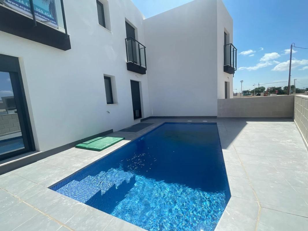 **Casa moderna en venta con piscina privada en un entorno privilegiado** Descubre esta espectacular casa adosada que combina modernidad y comodidad. Con 120 m² construidos y 110 m² útiles, cuenta con 3 luminosos dormitorios y 2 baños, perfectos para disfrutar de la vida en familia. La propiedad destaca por su amplia terraza de 50 m², ideal para relajarse o celebrar reuniones al aire libre. El interior presenta suelos de cerámico que aportan elegancia, puertas lacadas en blanco y ventanas de aluminio que permiten una excelente entrada de luz natural. Además, con dos armarios empotrados, el espacio de almacenamiento está garantizado. La casa es completamente exterior, lo que maximiza la luminosidad en cada rincón. La preinstalación de aire acondicionado asegura un clima agradable durante todo el año. La vivienda está adaptada para personas con movilidad reducida, ofreciendo acceso cómodo y funcional. También incluye una plaza de garaje para mayor comodidad. ¡No dejes pasar esta oportunidad única de vivir en un hogar moderno con piscina privada!
