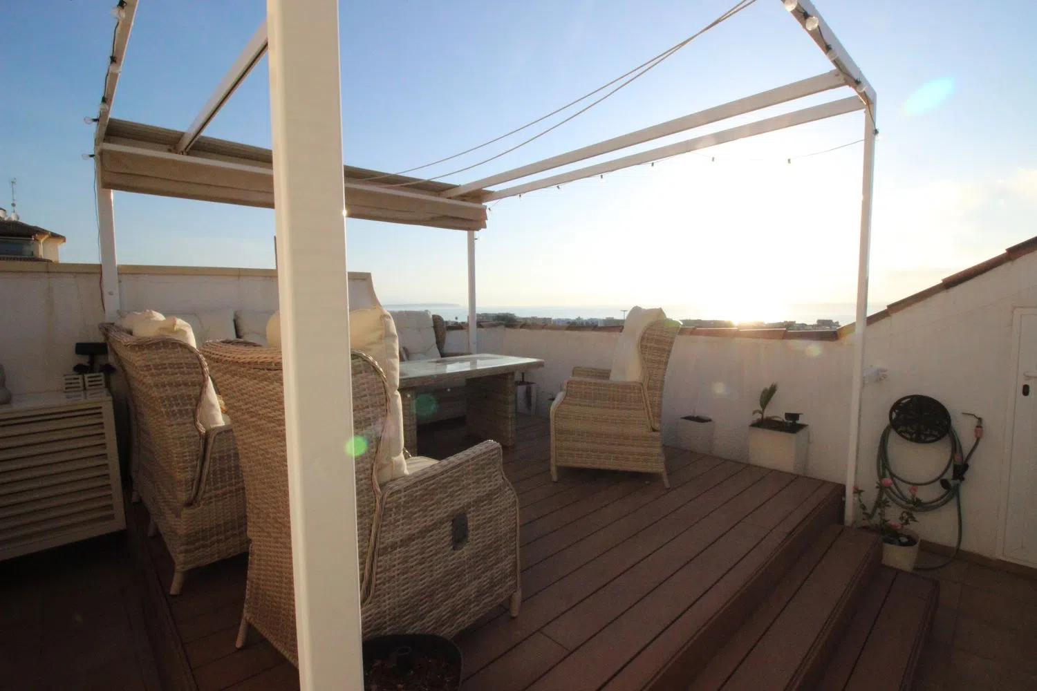 Subiendo al solárium, descubrirá un espacio privado perfecto para desconectar y disfrutar de las panorámicas al mar, creando un refugio personal lejos del bullicio diario. Además, la propiedad cuenta con domótica integrada que controla diferentes funciones del hogar, así como aire acondicionado para garantizar el confort en cualquier estación del año.