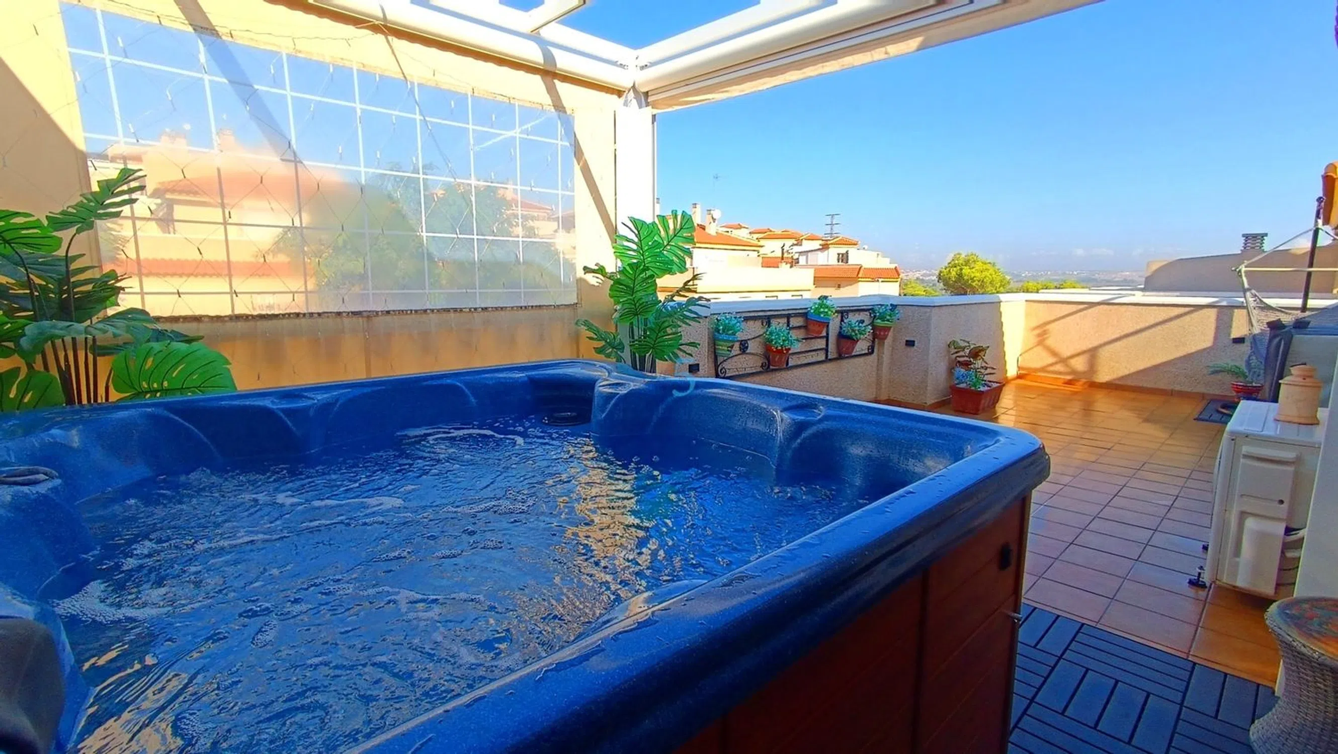 ¡Nos complace presentar este fantástico apartamento de 3 dormitorios y 2 baños en planta alta con orientación oeste con solárium privado, entrada y piscina comunitaria, El Edén, Guardamar del Segura! Situado en la codiciada zona residencial de El Edén en Guardamar del Segura, este fantástico apartamento en planta alta con orientación oeste ofrece un interior de alta calidad, un camino de entrada privado y una variedad de espacios al aire libre que incluyen dos terrazas y un solárium privado. La propiedad se beneficia de un camino de entrada privado seguro con un útil espacio de almacenamiento debajo de la escalera. Una escalera compartida conduce a la entrada, donde una terraza privada le da la bienvenida a la amplia y luminosa sala de estar y comedor, con aire acondicionado y ventiladores de techo. Un pasillo conecta con la cocina reformada, un baño con ducha bien equipado, un dormitorio de invitados y un dormitorio principal con armarios empotrados y acceso a una segunda terraza. Una escalera interior conduce al nivel superior, donde encontrará otro amplio dormitorio, un segundo cuarto de baño con ducha que se ha adaptado inteligentemente a una sauna y acceso directo al impresionante solárium privado. Este espacio cuenta con una gran terraza para tomar el sol, bañera de hidromasaje con calefacción solar y almacenamiento adicional. La propiedad también disfruta de acceso a una piscina comunitaria ubicada en la siguiente carretera, con un amplio espacio circundante para relajarse y disfrutar del sol español. Perfecto como hogar permanente, escapada de vacaciones u oportunidad de inversión, este apartamento está listo para entrar a vivir y disfrutar. 5 Real Estate es la agencia inmobiliaria internacional de servicio completo y tarifa fija de más rápido crecimiento en España, con numerosas oficinas en el norte y sur de la Costa Blanca, así como en la región de Murcia. Estamos comprometidos a brindar un servicio transparente y de primera clase a todos nuestros clientes, ya sean compradores o vendedores. Desde el momento en que se ponga en contacto con nosotros por primera vez, se dará cuenta de la diferencia que ofrecemos y promovemos como estándar. Puede estar seguro de que está tratando con profesionales eficientes y confiables con muchos años de experiencia en bienes raíces españoles. En 5 Real Estate solo vendemos propiedades que están listadas directamente con nosotros, lo que significa que conocemos personalmente a cada uno de los vendedores, sus casas y las áreas en las que se encuentran. Dada nuestra amplia cartera de propiedades listadas directamente, estamos seguros de que podemos encontrar la propiedad adecuada para satisfacer sus necesidades. Por lo tanto, haga una consulta hoy y descubra por qué somos tan diferentes y por qué nos estamos convirtiendo en el agente elegido tanto por compradores como por vendedores.