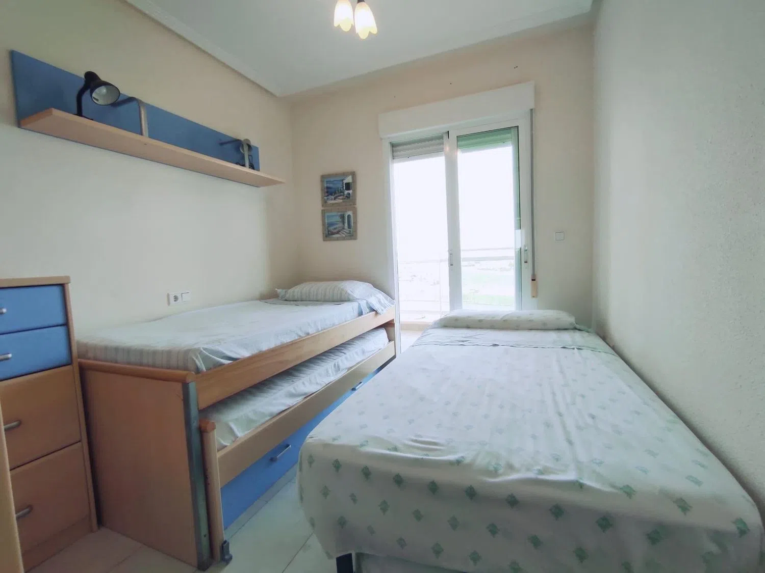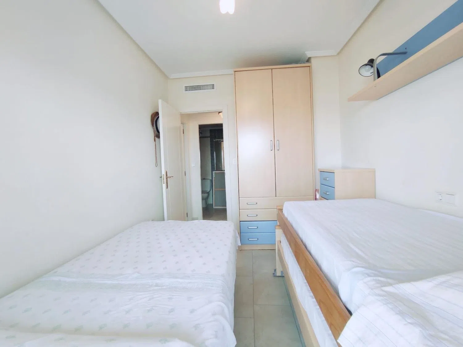 Consta de dos amplios dormitorios. El primero cuenta con una cama nido y una cama de 90, además de un armario auxiliar y acceso a una terraza orientada hacia el norte. El segundo dormitorio es la suite principal, equipada con cama de matrimonio, armario empotrado y también con acceso a la terraza norte.