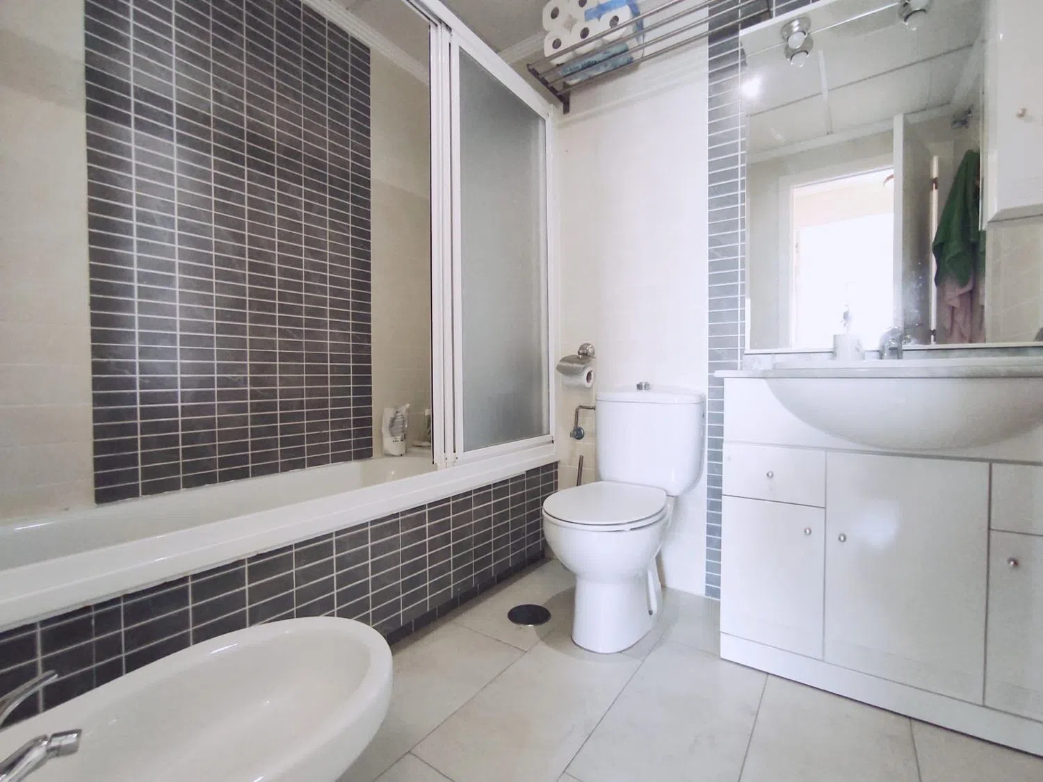 La vivienda incluye un baño completo que dispone de bañera, inodoro, bidet y lavabo con armario.