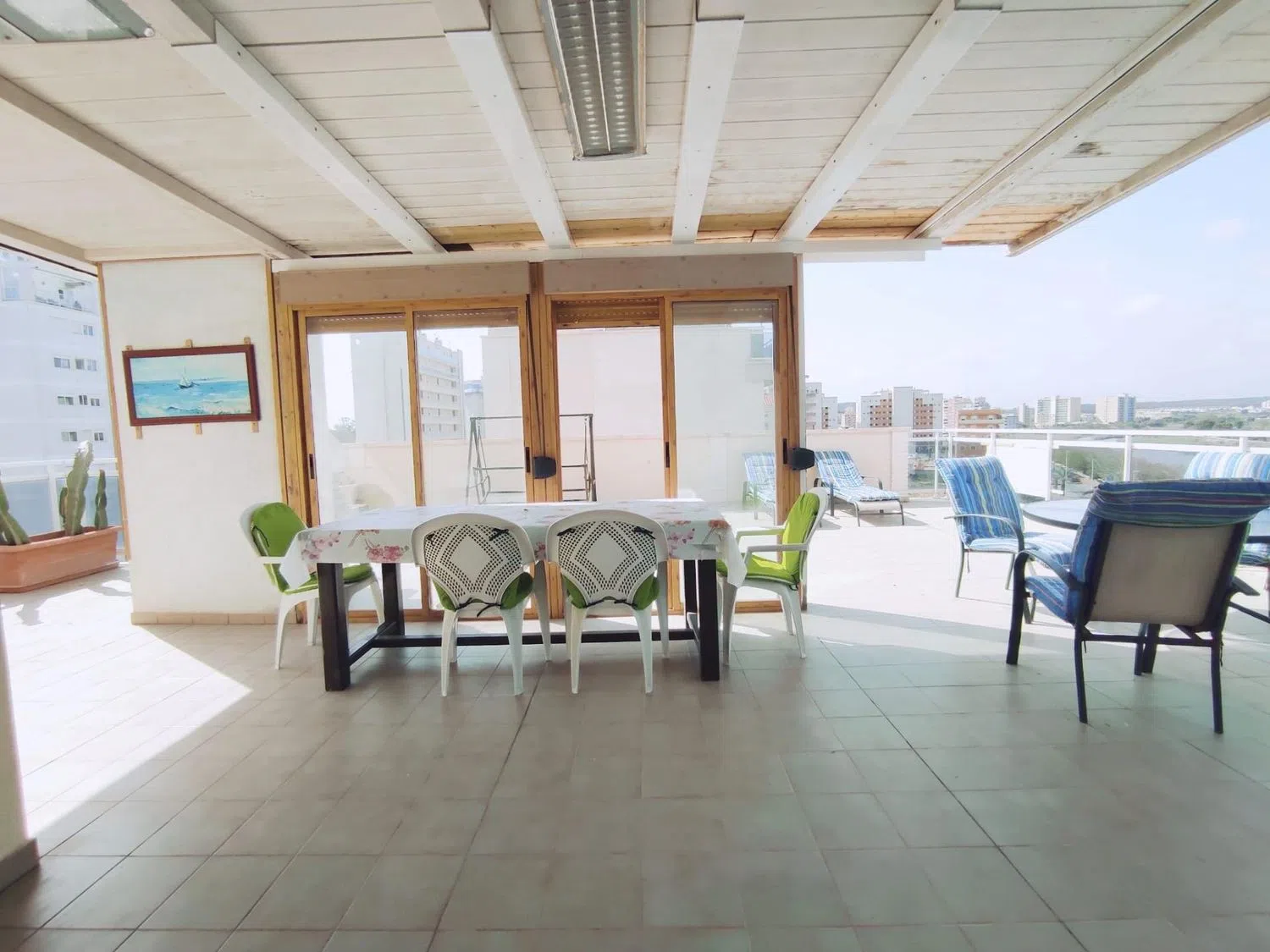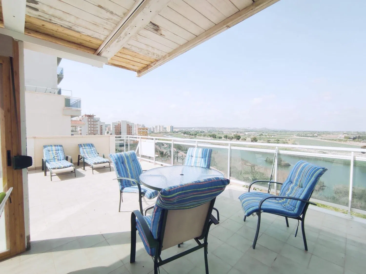 Destaca la amplia terraza solárium, que presenta una zona techada con aluminio, donde se encuentra un acogedor porche y una barbacoa, ideal para disfrutar de las maravillosas vistas al mar, la montaña y el río.