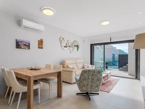 Descubre este impresionante adosado en la codiciada zona de El Raso, que ofrece una perfecta combinación de confort, diseño moderno y lujosas comodidades. Con 2 amplios dormitorios y 2 baños, esta propiedad es ideal para aquellos que buscan un retiro relajante o una inversión de alta calidad en la Costa Blanca. Entra y déjate envolver por un espacio de vida luminoso y espacioso, que se conecta a la perfección con una elegante cocina de planta abierta. El gran solárium es una característica destacada, que proporciona el lugar perfecto para tomar el sol, disfrutar de barbacoas o relajarse en las cálidas noches de verano. Ubicado dentro de un exclusivo complejo cerrado, los residentes disfrutan de acceso a una espectacular piscina exterior, una piscina interior climatizada, una sauna revitalizante y un jacuzzi exterior: un verdadero paraíso para la relajación. Los exuberantes jardines comunitarios y los alrededores bien cuidados se suman al ambiente de resort. El Raso es una comunidad vibrante conocida por su ambiente encantador, su proximidad a las impresionantes playas de Guardamar, campos de golf de primera categoría y una variedad de restaurantes y tiendas. Ya sea que busques una residencia permanente, una escapada de vacaciones o una inversión inteligente, esta propiedad es una excelente opción. No pierdas esta oportunidad; programa una visita hoy mismo y ¡experimenta el máximo estilo de vida mediterráneo!