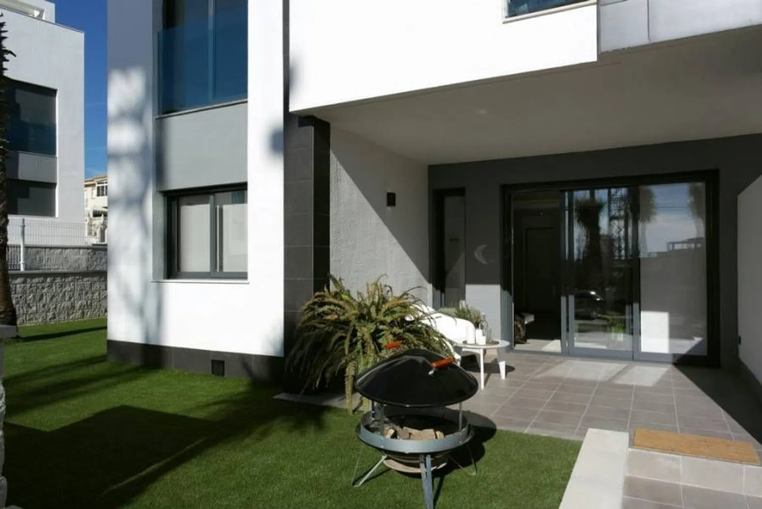 El complejo residencial cuenta con una refrescante piscina comunitaria y generosas áreas ajardinadas y de ocio, perfectas para disfrutar del entorno. Podrás elegir entre bungalows en planta baja con jardín privado, bungalows en plantas intermedias que disponen de amplias terrazas, o bungalows en la planta alta con solárium y terraza, ideales para relajarse al aire libre.