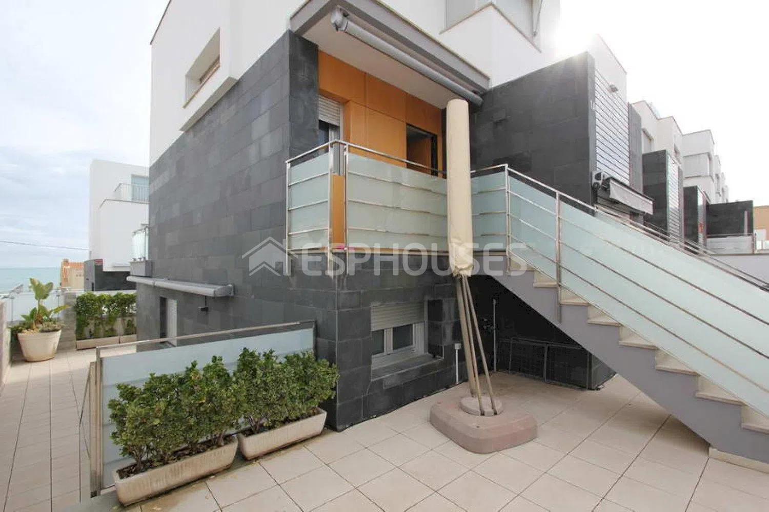 Moderna vivienda situada a tan solo 50 metros de la playa, ofreciendo impresionantes vistas al mar. Equipado con sistema doméstico instalado, persianas eléctricas, calefacción a gas, y aire acondicionado en toda la casa para proporcionar confort tanto en invierno como en verano. El garaje tiene capacidad para dos coches y también se incluye un trastero. El complejo residencial dispone de una piscina comunitaria, ideal para disfrutar del clima cálido y soleado.