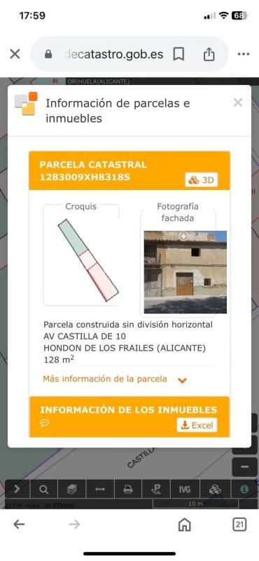 Excelente oportunidad de inversión en el eje principal de Hondón de los Frailes. Se trata de una propiedad situada en una zona privilegiada de Hondón de los Frailes y está a 1 hora del aeropuerto y 40 minutos de la playa. El pueblo cuenta con todos los servicios. La propiedad tiene orientación sur. Actualmente está conformada por una vivienda antigua de 2 plantas y un jardín trasero. Muchas posibilidades.