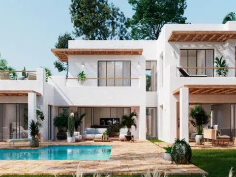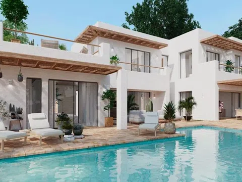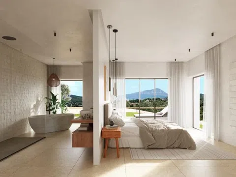 Además, en esta planta se encuentra un amplio dormitorio con baño en suite y su propio vestidor, permitiendo acceso directo a las terrazas. En la planta superior, la villa ofrece tres dormitorios dobles, todos con baños en suite y armarios empotrados. Grandes ventanales en cada habitación aseguran una abundante iluminación natural. Dos terrazas abiertas en este nivel ofrecen vistas increíbles, una de ellas con acceso exclusivo desde el dormitorio principal, donde se encuentra un espacioso baño con un diseño único y bañera.