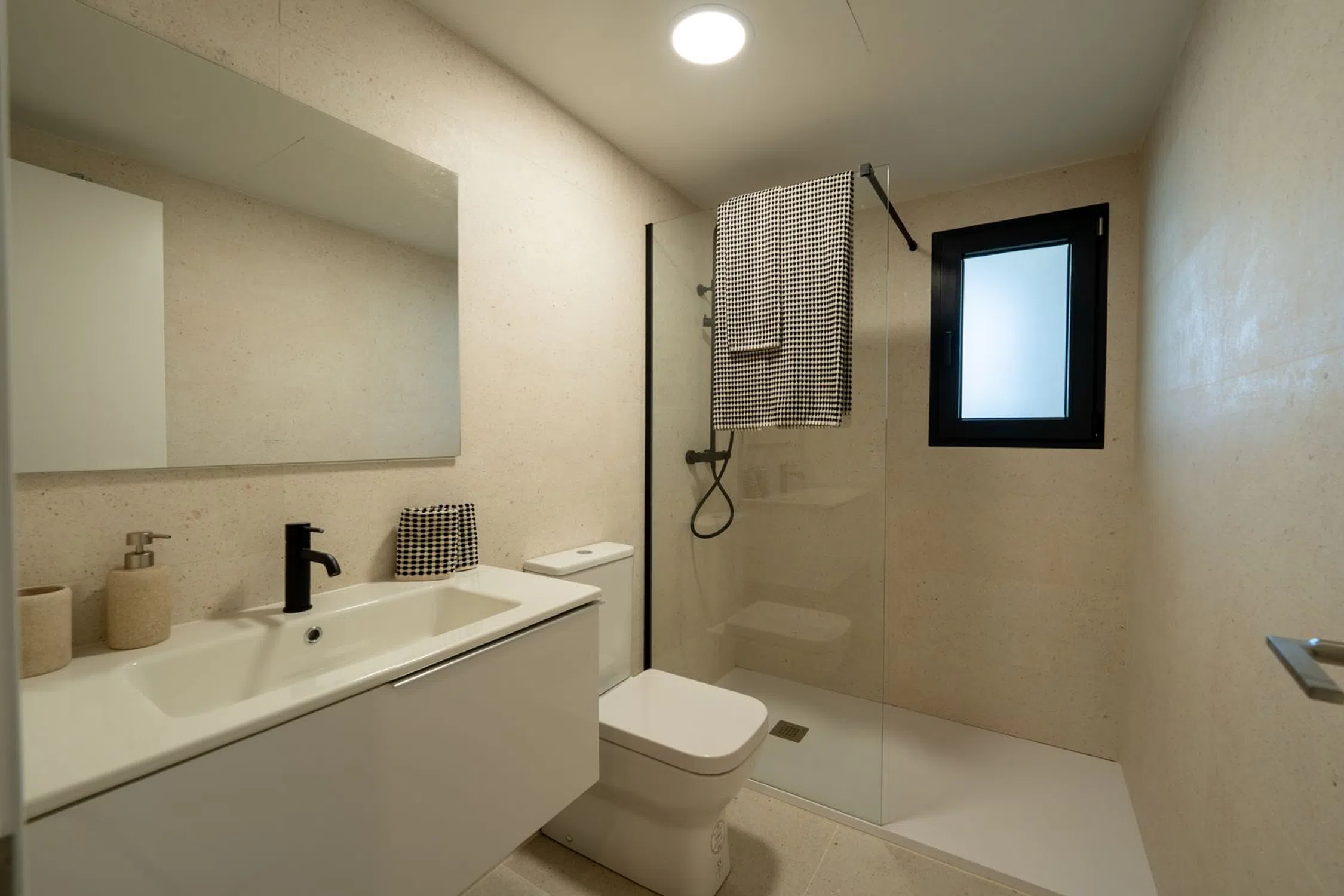 Descubre un exclusivo residencial diseñado con materiales de primera calidad y pensado para ofrecer el máximo confort. El edificio se levanta sobre una sólida estructura de hormigón armado y fachadas con doble aislamiento térmico y acústico, garantizando eficiencia, durabilidad y bienestar en el día a día. Las viviendas cuentan con carpintería exterior de PVC con doble acristalamiento y persianas motorizadas en dormitorios, puertas de acceso blindadas y acabados interiores cuidados al detalle. Los pavimentos porcelánicos de gran formato PORCELANOSA aportan uniformidad y elegancia en toda la vivienda, incluidos baños y cocina. En terrazas y zonas comunes, se ha optado por un porcelánico antideslizante de alta resistencia. El confort está asegurado gracias a la instalación completa de climatización por conductos (frío/calor), sistema de ventilación en baños y cocinas, y una moderna instalación eléctrica con mecanismos de gama alta. El edificio cuenta con ascensor de acero inoxidable con iluminación LED. Las cocinas se entregan totalmente equipadas con mobiliario moderno y electrodomésticos integrados: horno, microondas, campana oculta, vitrocerámica, lavavajillas, frigorífico y lavadora. Los baños, también de PORCELANOSA, incluyen lavabos suspendidos con muebles de diseño, platos de ducha extrafinos, grifería negra mate y mamparas instaladas. El complejo dispone de un acceso controlado mediante videoportero FERMAX y zonas exteriores pensadas para disfrutar: áreas ajardinadas con especies autóctonas de bajo mantenimiento y sistema de riego por goteo, senderos peatonales y una piscina con zonas de distinta profundidad, acabada con gres porcelánico y rodeada de espacios de descanso y césped. Una vivienda moderna, eficiente y diseñada para disfrutar de la vida mediterránea con todas las comodidades.