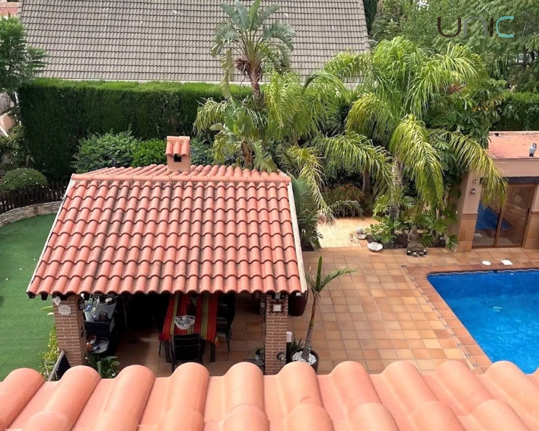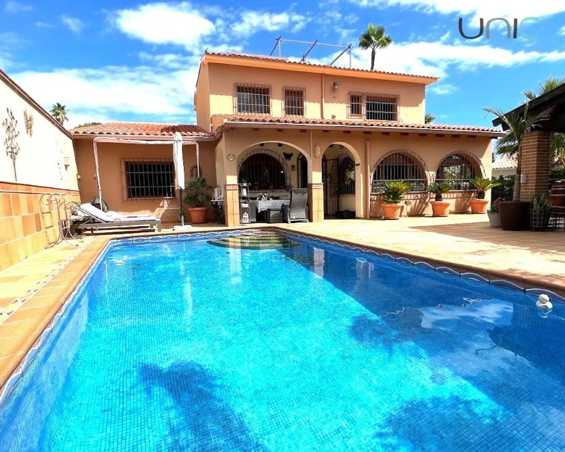 ¡Descubre tu lugar perfecto en esta impresionante villa independiente de orientación sur! Completamente renovada. Cuenta con dos niveles y ofrece un estilo de vida lujoso y cómodo. En la planta baja, encontrarás un acogedor salón con chimenea, un comedor separado y una cocina abierta totalmente equipada. De los cinco dormitorios, hay tres en la planta baja y dos en el nivel superior, cuentan con armarios empotrados y el dormitorio principal dispone de un vestidor. Los cuatro baños modernos aseguran comodidad para toda la familia. Disfruta de momentos de relax en la terraza de la azotea con vistas al mar o en la habitación con jacuzzi. La villa está equipada con calefacción central a gasoil y aire acondicionado en todas las habitaciones, garantizando confort durante todo el año. El exterior no se queda atrás: una piscina privada sin vecinos, una barbacoa cubierta/cocina de verano y un jardín diseñado para poco mantenimiento con sistema de riego automático. Además, cuenta con dos puertas eléctricas que dan acceso a una cochera y un garaje. Con 280 m² construidos y 260 m² útiles sobre una parcela de 895 m², esta villa es el hogar ideal para quienes buscan lujo y tranquilidad. ¡No pierdas la oportunidad de vivir en este paraíso!