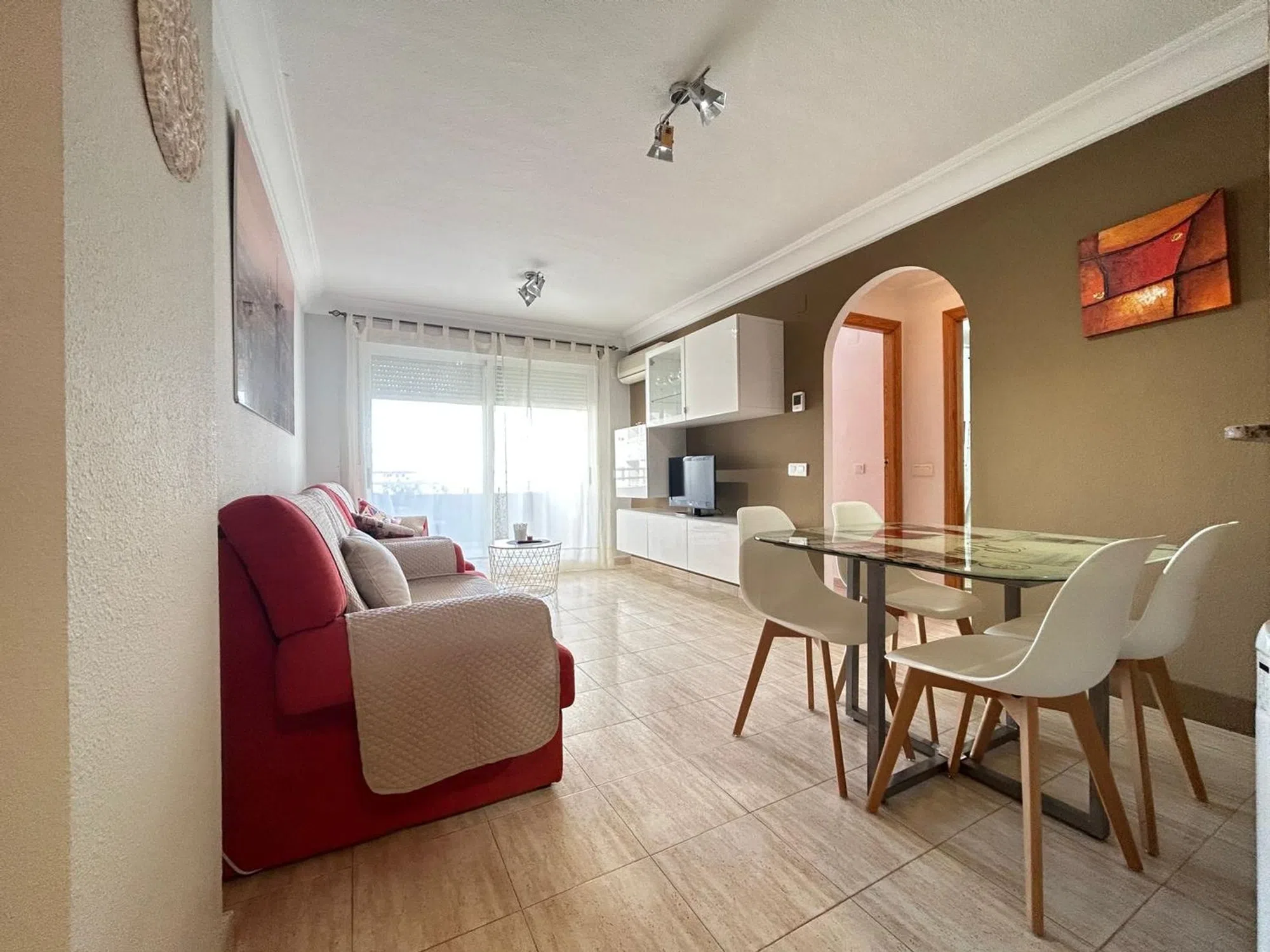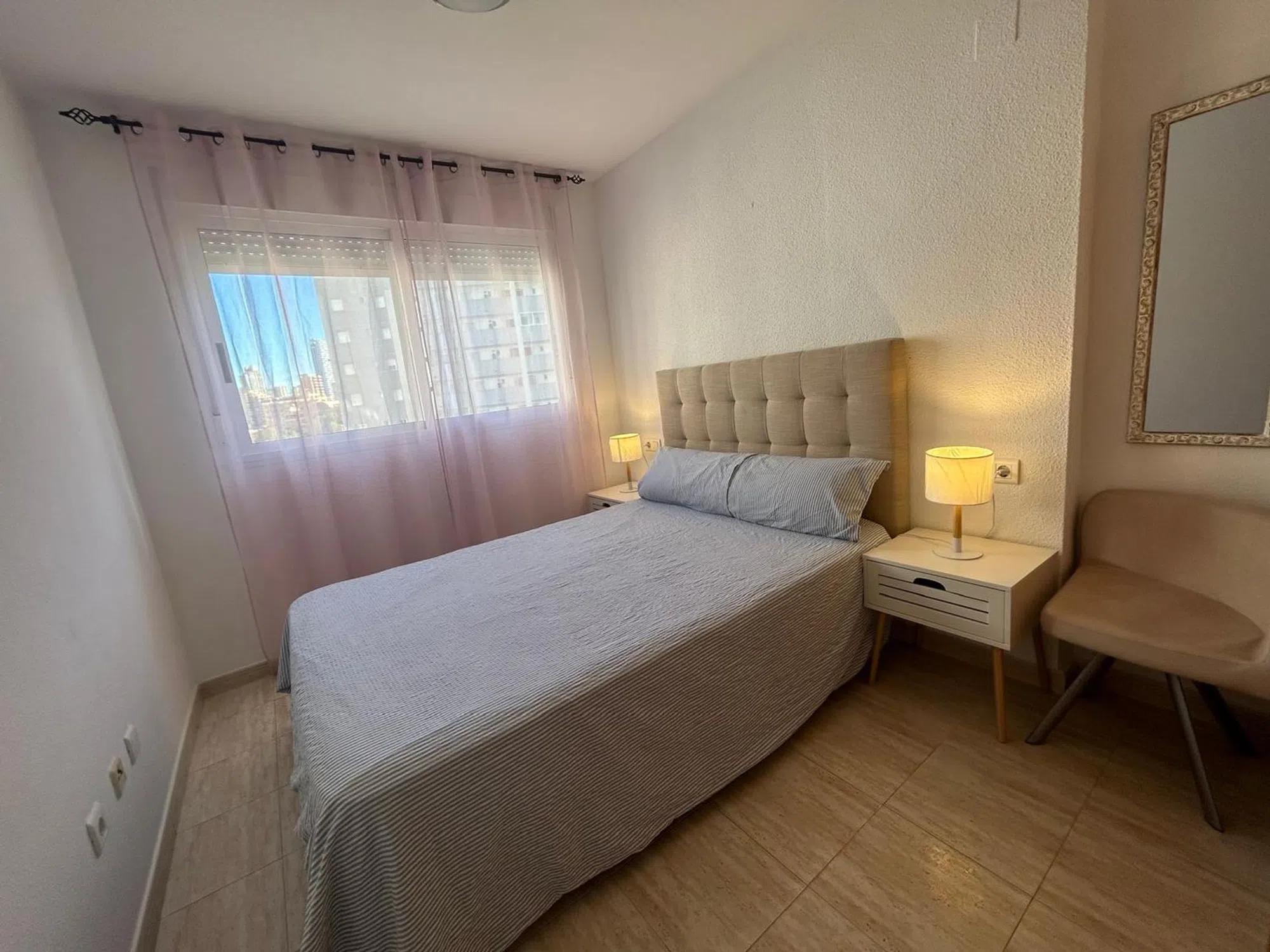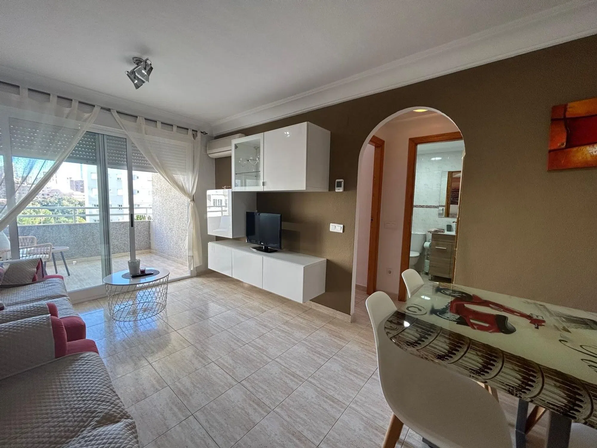 OPORTUNIDAD QUE NO PUEDES DEJAR ESCAPAR! En la preciosa cala de Finestrat se encuentra este acogedor apartamento con inmejorable ubicación. A tan solo cuatro minutos de la cala y a 15 minutos de Benidorm en transporte. La zona se encuentra llena de servicios, supermercados, centro de salud, comercios y transporte publico, todo a pie de la bonita urbanización donde te encontrarás con un entorno muy cuidado con olivos, palmeras, setos, césped precioso e inmejorable que cuidan durante todo el año. Al igual que la piscina comunitaria, la cual se puede disfrutar en cualquier momento. Se trata de un entorno tan agradable que bajar con un libro y tumbarte en el césped se convierte en un verdadero placer. Mirando a este bonito paisaje se encuentra este acogedor apartamento totalmente equipado con sus dos dormitorios, cocina de roble, un baño y salón comedor con salida a terraza donde se puede disfrutar de la tranquilidad de la zona y vistas. Cuenta con suelo de gres, ventanales de aluminio blanco y puertas de roble, además cuenta con aparato de aire acondicionado por splits. Dispone de una plaza de aparcamiento. QUE NO TE LO CUENTEN! Te informamos sin compromiso! NOTA: Por privacidad del inmueble y sus propietarios la dirección no corresponde a la real. En caso de querer más información, no dude en ponerse en contacto con nosotros. La información aportada del presente inmueble puede incurrir en error por falta de detalles del mismo que no hayan podido ser comunicados correctamente a la Inmobiliaria, por lo que Art Inmobiliari se exonera de los mismos.