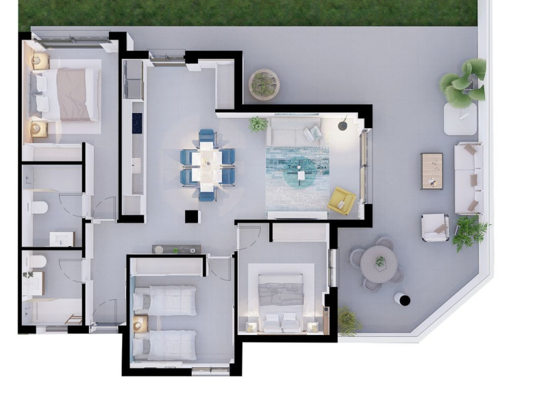 Este es el tercer edificio que completará el complejo y ofrece apartamentos modernos con diseño de concepto abierto a menos de 500 metros de la playa y el mar Mediterráneo. Ahora puede elegir entre apartamentos de 2 y 3 dormitorios y también últimas plantas con terraza tipo solarium de unos 60 m². Este apartamento con vistas a la montaña, que mira a la zona de la piscina, ofrece un plano abierto entre salón y cocina, 2 dormitorios y 1 baño. También tiene una galería al lado de la cocina. La misma estará equipada con muebles altos y bajos con vitrocerámica y campana extractora. También cuenta con la preinstalación de aire acondicionado por conductos incluida en el precio. Todos los precios incluyen una plaza de garaje y un trastero. Aquí será parte de una bonita urbanización familiar, activa, acogedora y moderna con piscina rodeada de zonas verdes. Es fácil llegar tanto al casco antiguo de Villajoyosa a pie, como a la ciudad de Alicante con un corto trayecto en coche. Llave en mano a finales de 2023. ¡PÓNGASE EN CONTACTO CON FASTIGHETSBYRÅN PARA OBTENER MÁS INFORMACIÓN SOBRE DISPONIBILIDAD Y PRECIOS! .