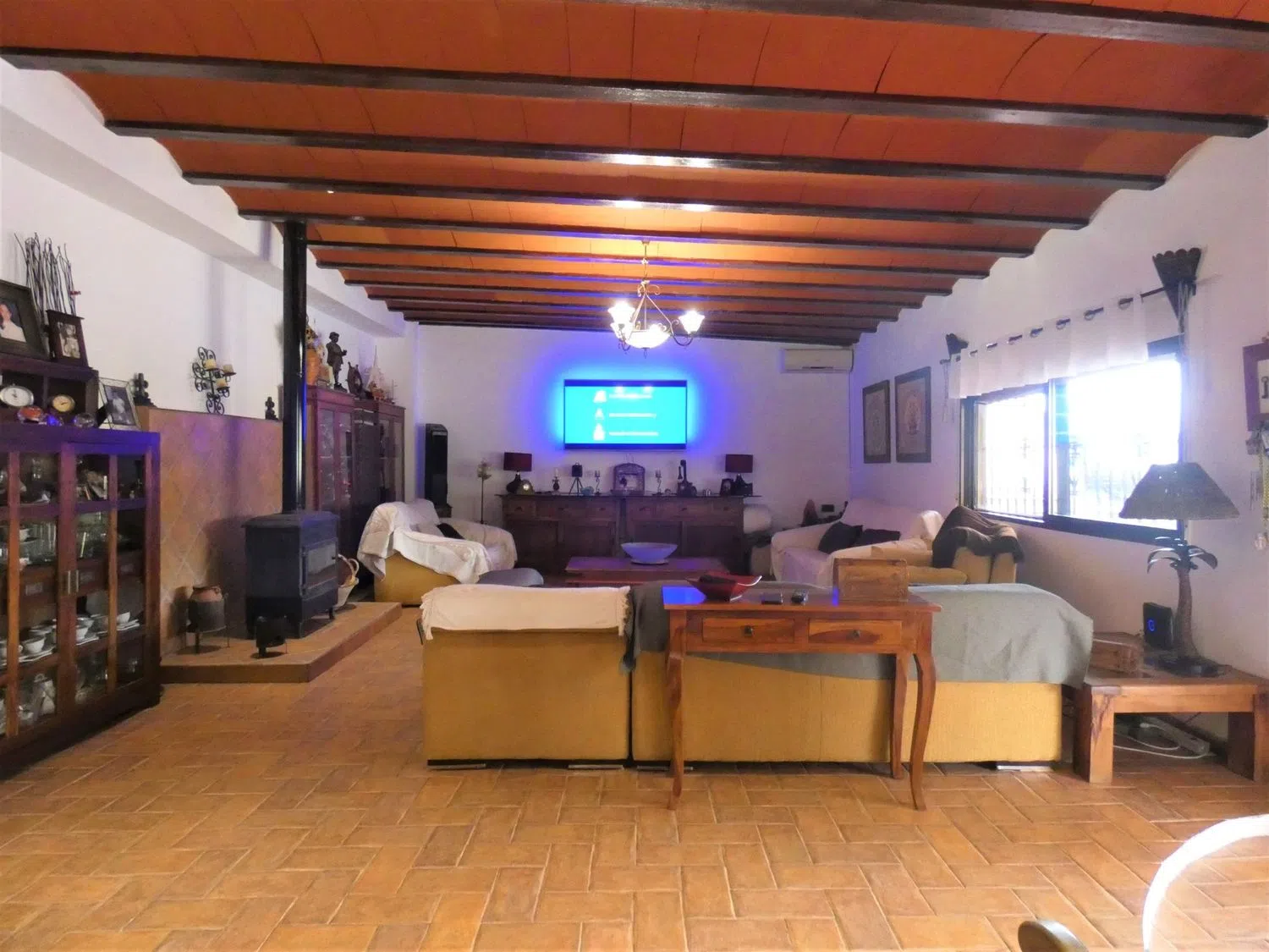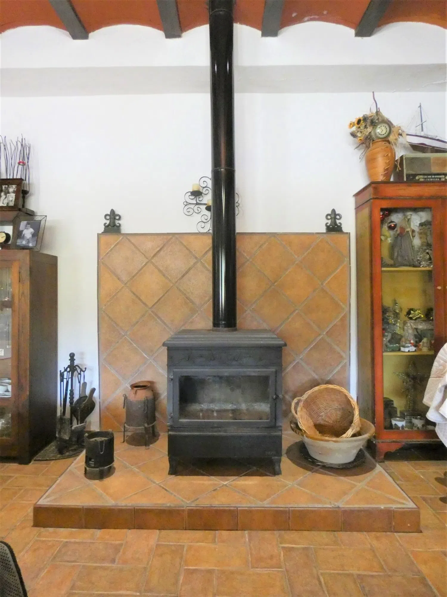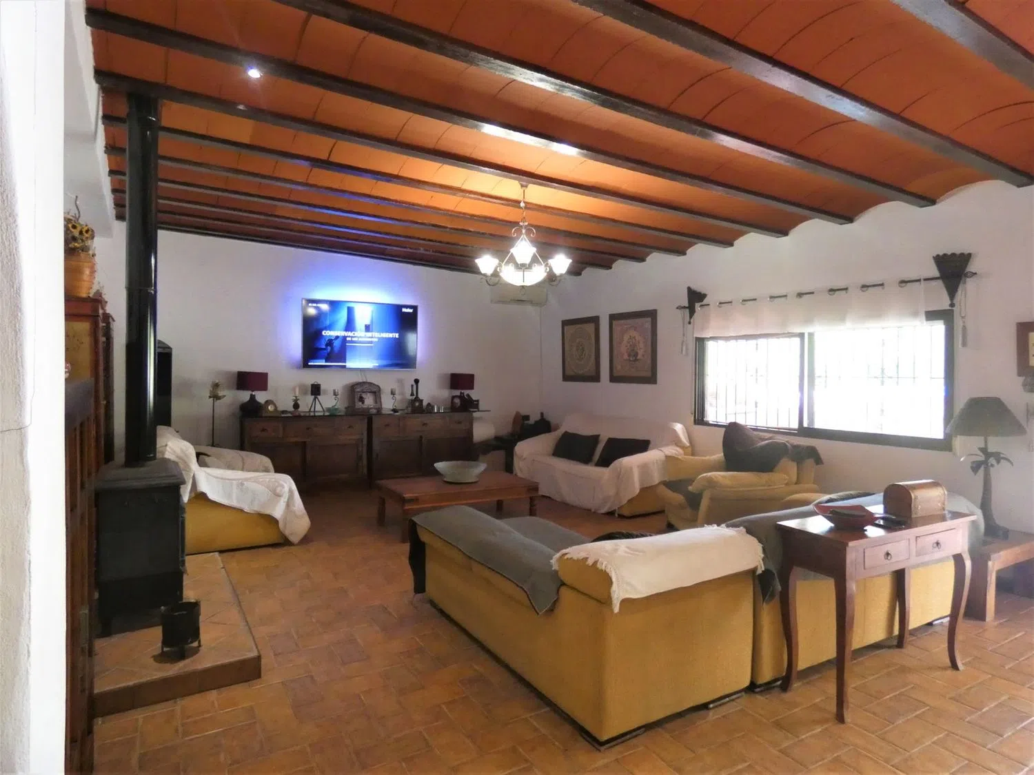 Al entrar, serás recibido por una acogedora sala de estar que cuenta con una estufa de hierro fundido, proporcionando un rincón cálido y cómodo para reuniones sociales. Más allá, descubrirás una cocina magistralmente diseñada, con generosas superficies de trabajo y una chimenea que añade un toque especial al ambiente.
