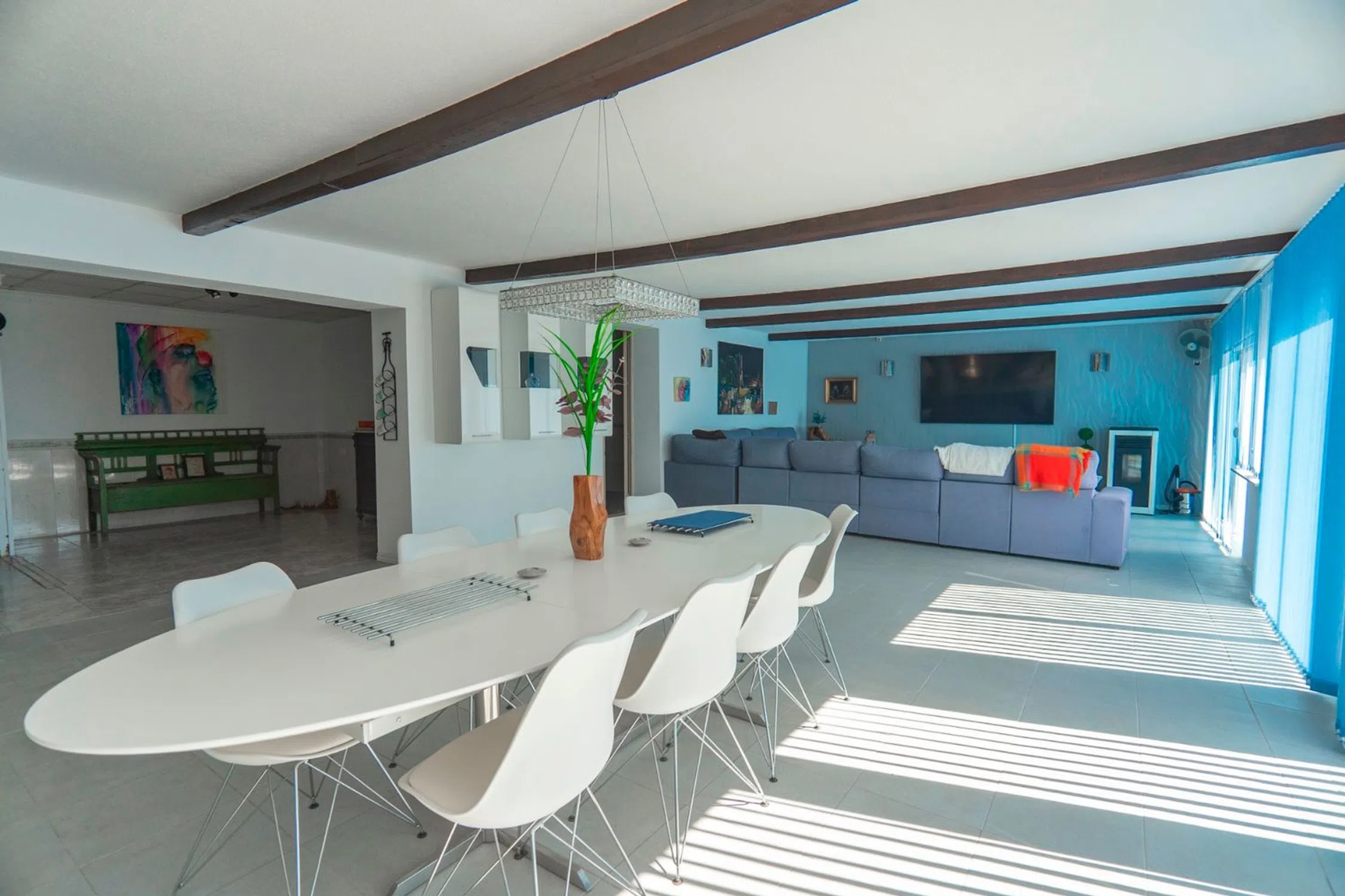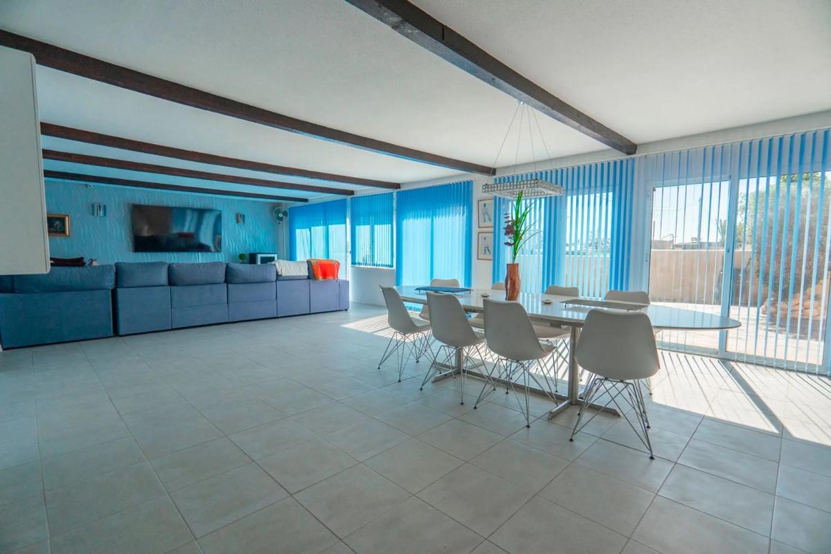 Oportunidad única de comprar una propiedad rural con potencial para caravana u otro negocio. Esta propiedad rural, situada en una parcela de casi 8000 m2, ofrece una gran variedad de posibilidades. Sería una casa familiar estupenda, pero con tanto espacio para utilizar, también podría utilizarse (sujeto a licencia) como B&B, aparcamiento de caravanas, almacén y mucho más. La propiedad consta de una casa principal con tres dormitorios, cuatro dormitorios de invitados adicionales con baño privado y acceso propio (uno actualmente configurado como cocina comercial), dos piscinas, varias dependencias que podrían usarse como talleres, una dependencia configurada como bar y varias caravanas. La casa principal ha sido renovada y cuenta con una cocina/comedor de lujo muy grande con elegantes muebles blancos. Junto a la cocina hay un baño moderno y el primero de los dormitorios de la casa principal. Camine hasta un pasillo con dos dormitorios dobles más. El dormitorio principal cuenta con una sala de estar y un baño privado. La sala de estar, muy grande y moderna, se encuentra al costado de la casa. Esta habitación está inundada de luz a través de los ventanales que van desde el piso hasta el techo y las puertas corredizas que se extienden a lo largo de toda la habitación. Hay otras dos habitaciones al lado de esta habitación que podrían convertirse en un cuarto dormitorio o tal vez en un gimnasio. La casa también cuenta con un encantador patio al lado de la cocina. Además, a este patio se abren dos de los cuatro dormitorios de invitados con baño privado. Los otros dos dormitorios de invitados están contiguos pero dan a la zona de la piscina. La piscina mide 11 x 6 m, está recién rejuntada y es de agua salada. Hay mucho espacio alrededor de la piscina para relajarse o divertirse. Toda la casa privada y el área de la piscina están amuralladas del resto del terreno, lo que le brinda privacidad de las caravanas o cualquier otro negocio que elija administrar. Actualmente hay seis caravanas en la parte principal del terreno, todas situadas alrededor de una segunda piscina solo para huéspedes. Hay otra gran zona en la parte trasera del terreno que podría desarrollarse para más caravanas con una tercera piscina (sujeto a permiso de planificación). Los extras incluyen Paneles solares que cubren todas las necesidades energéticas tanto de la casa como de la caravana (aunque hay electricidad de red disponible) Un nuevo techo para la casa principal, con aislamiento. Se agregaron paneles aislantes a las paredes de la casa principal, haciéndola cálida en invierno y fresca en verano. La propiedad está situada en el pequeño enclave de Los Pérez, que está a las afueras de Los Montesinos y a poca distancia en coche de San Miguel de Salinas. Los Montesinos es un pueblo típico español, aunque ahora también es el hogar de muchos residentes internacionales. Es popular porque conserva su ambiente español. La vida del pueblo se centra en la concurrida plaza, que está rodeada de bares y restaurantes. Aquí puedes reunirte para las numerosas fiestas que se celebran durante todo el año, incluido el festival de comida internacional, las fiestas de Navidad y el desfile de octubre. El pueblo tiene una bonita iglesia antigua, que es el centro de la vida del pueblo. El desfile de Semana Santa es un verdadero punto culminante, cuando las calles se pavimentan con flores y el sacerdote y la gente del pueblo recrean la resurrección. Si buscas un lugar donde realmente puedas sumergirte en el estilo de vida español y, al mismo tiempo, tener vecinos de muchas nacionalidades, Los Montesinos podría ser el lugar ideal para ti.