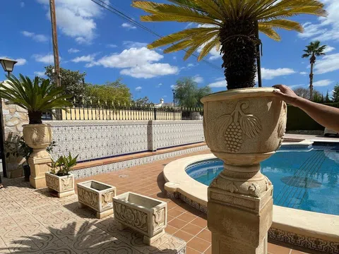 � VILLA DE LUJO EN MONFORTE DEL CID – UNA OPORTUNIDAD ÚNICA EN ALICANTE � Precio: 550.000 € Superficie construida: 250 m² Terraza: 40 m² ¿Estás buscando la casa de tus sueños en una ubicación privilegiada, con todas las comodidades que puedas imaginar? ¡Este es tu hogar! Impresionante villa en Monforte del Cid, situada en una exclusiva zona residencial, rodeada de naturaleza, campos de golf y con acceso rápido a Alicante, a tan solo 20 minutos en coche del centro de la ciudad. Esta propiedad es el refugio perfecto para quienes buscan lujo, confort y tranquilidad, sin renunciar a la cercanía a todos los servicios. Características destacadas: -Espacios amplios y luminosos: 5 habitaciones dobles y 2 baños, pensados para tu confort y privacidad. Áreas exteriores para disfrutar del buen tiempo: -Piscina privada con sistema de limpieza, ideal para relajarte o disfrutar en familia. -Pérgola y barbacoa para tus reuniones y cenas al aire libre. -Gran terraza y solárium con vistas espectaculares a la montaña, donde podrás desconectar por completo. -Sótano y garaje doble: El sótano es perfecto para usar como trastero o sala de juegos, y el garaje doble te ofrece -comodidad y seguridad. Diseño de lujo y comodidad: -Techos altos que proporcionan amplitud y luminosidad en toda la vivienda. -Chimenea independiente para disfrutar de momentos acogedores en invierno. -Aire acondicionado y calefacción, para estar cómodo todo el año. -Armarios empotrados y despensa para mayor organización. -Balcón con vistas y jardín con árboles que te darán una sensación de paz y relajación. Ubicación privilegiada: -A pocos minutos de los campos de golf y rodeada de naturaleza, en una zona exclusiva de Monforte del Cid. -Urbanización segura y vallada, con acceso a todos los servicios, como transporte público (tren), colegios y centros comerciales. -Piscina comunitaria y áreas comunes que complementan a la perfección tu estilo de vida. -5 min Campo de golf y 12 min hasta centro de Alicante. ¡Una oportunidad irrepetible! Vivir en esta villa no es solo tener un hogar, ¡es disfrutar de un estilo de vida exclusivo! Desde sus amplios espacios hasta su ubicación estratégica cerca de Alicante, esta propiedad es ideal para quienes buscan un equilibrio perfecto entre lujo, confort y naturaleza. ¡No dejes escapar esta increíble oportunidad de vivir en la casa de tus sueños! � Contáctanos ahora mismo y agenda tu visita. ¡Este hogar te está esperando!