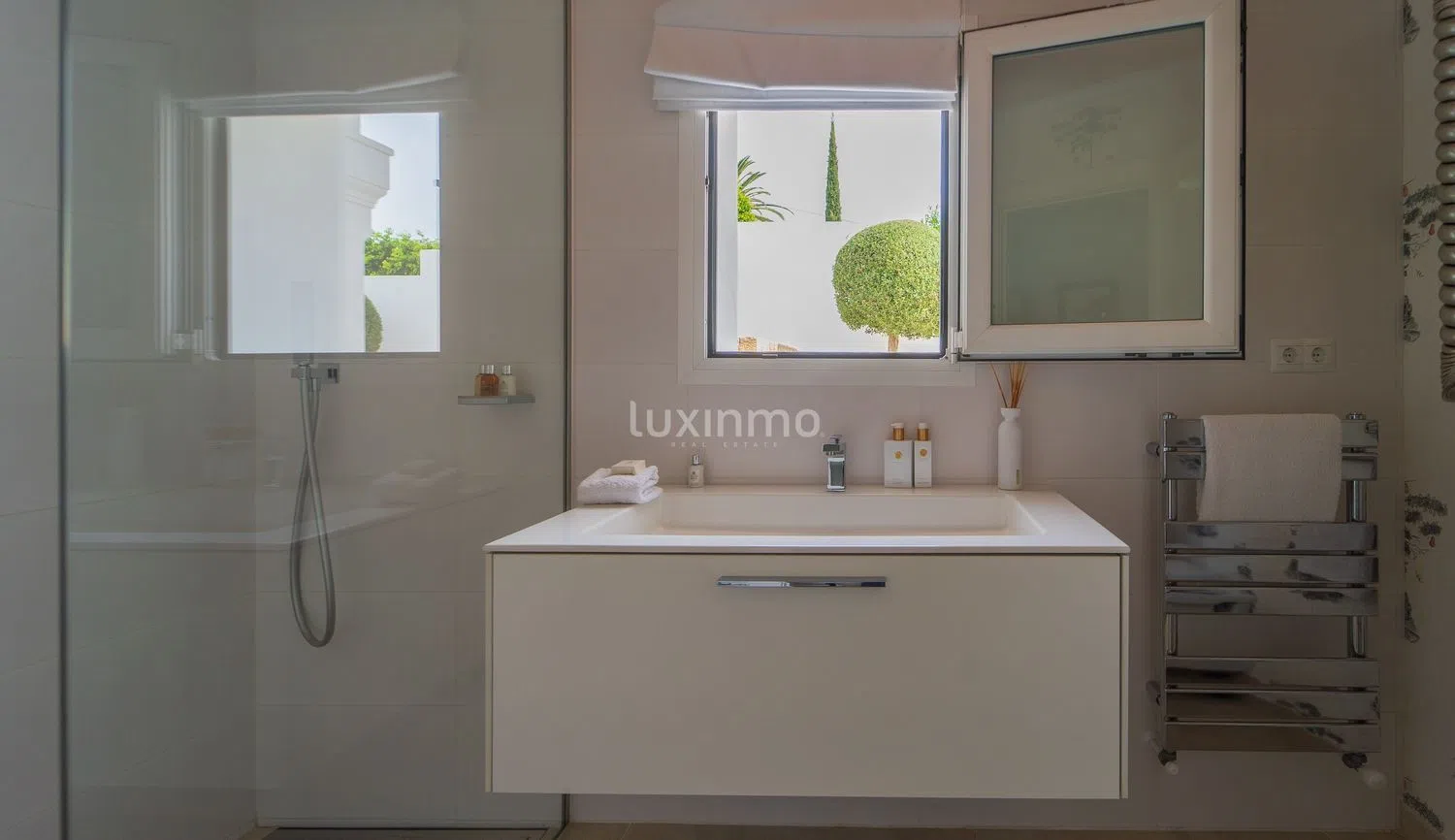 Experimente la mezcla perfecta de lujo, modernidad y encanto mediterráneo en este exquisito chalet independiente situado en la hermosa localidad de Moraira. Esta propiedad de segunda mano cuenta con unos espaciosos 310m2 de superficie útil, 360m2 de superficie construida y una amplia parcela de 1282m2. Construido en 2009, esta joya con orientación suroeste ofrece confort, toda la superficie habitable en una sola planta con bonitas vistas al campo. CARACTERÍSTICAS Y EQUIPAMIENTOS: Esta notable propiedad está diseñada para la comodidad y el ocio, con una impresionante terraza y balcón para relajarse al aire libre. El aparcamiento es una brisa con aparcamiento privado y plazas de garaje disponibles. La casa también incluye un amplio espacio de almacenamiento. La cocina independiente está totalmente equipada y cuenta con un diseño de planta abierta, perfecto para entretener a los invitados. Un lavadero independiente añade comodidad a su vida diaria. El solarium, la cocina exterior y la zona de barbacoa crean el ambiente perfecto para reuniones al aire libre. El jardín privado y la piscina de la propiedad proporcionan un oasis de serenidad para relajarse y disfrutar. La casa está equipada con aire acondicionado, calefacción central y calefacción central de GAS para la comodidad durante todo el año. Armarios empotrados proporcionan un amplio almacenamiento para sus pertenencias personales. Para mayor seguridad, la propiedad incluye un sistema de alarma y persianas eléctricas. Las ventanas de doble acristalamiento ofrecen eficiencia energética y reducción del ruido. ZONA: Enclavada en el pintoresco pueblo de Moraira, esta propiedad ofrece el equilibrio perfecto entre tranquilidad y accesibilidad. La playa más cercana, Playa de l'Ampolla, está a sólo 2 km (aproximadamente 3 minutos en coche), y ofrece arenas doradas y aguas cristalinas. Moraira es también el hogar de numerosas otras playas y calas impresionantes para explorar y disfrutar. El aeropuerto de Alicante está a unos 95 km, lo que permite viajar cómodamente. La ciudad de Moraira ofrece una variedad de servicios, incluyendo supermercados, tiendas, restaurantes y actividades de ocio. En los alrededores se puede practicar senderismo, ciclismo y explorar la naturaleza. ación. No se pierda esta propiedad excepcional - el epítome de la vida de lujo en un entorno mediterráneo impresionante.