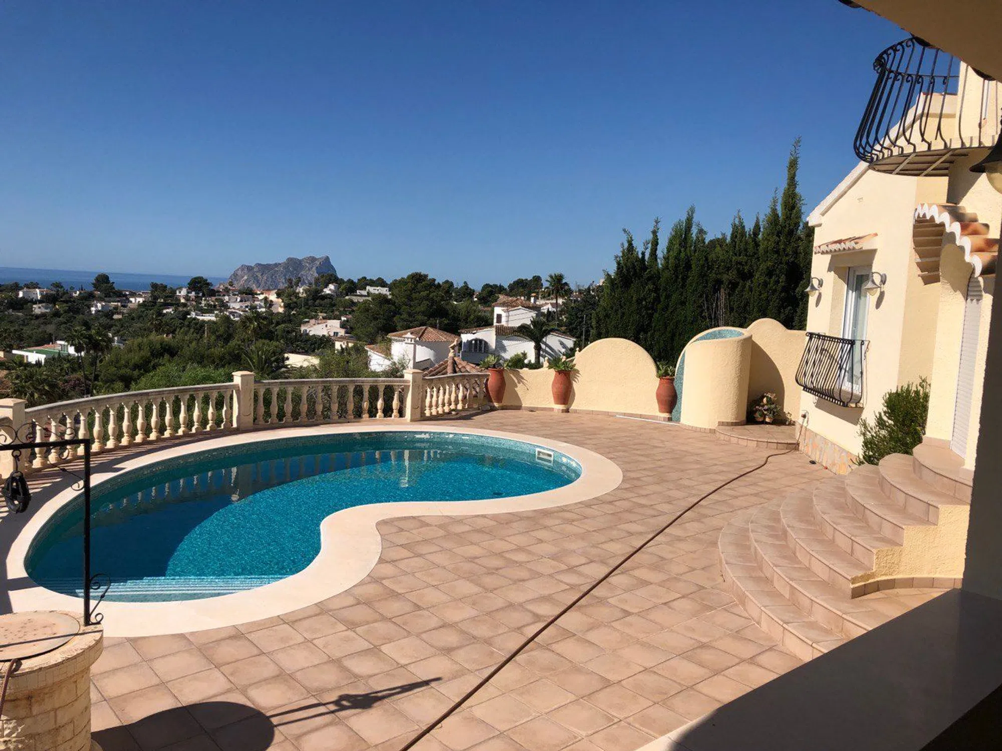 Villa de muy buena calidad con vistas al mar en MorairaSe ofrece chalet totalmente reformado con materiales de primera calidad. Tiene 367 metros de vivienda y 885 m² de parcela. La vivienda principal tiene 3 habitaciones dobles, cada una tiene su propio y amplio baño + un despacho con un sofa-cama, un aseo de invitados. Cocina equipada, salón-comedor con salida a una cómoda y privada terraza con vista al mar donde se puede hacer carne a la plancha porque tiene una zona preparada para esto y un lavabo con grifo. Aparatos de aire acondicionado estan en cada habitación y el salón. El mar se ve desde cada habitación de la casa. Bajando por la escalera exterior de la parcela hay un apartamento totalmente independiente que se puede utilizar para invitados o personal de limpieza. T iene salón con cocina americana, dormitorio grande y un baño completo. En el apartamento también hay aire acondicionado. En la parcela hay una zona con pergola para hacer deporte con tenis de mesa y maquina de fitnes. Parking cubierto para un coche. Piscina en forma de riñon. Tiene videovigilancia y alarma.