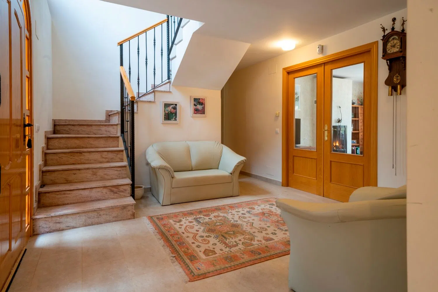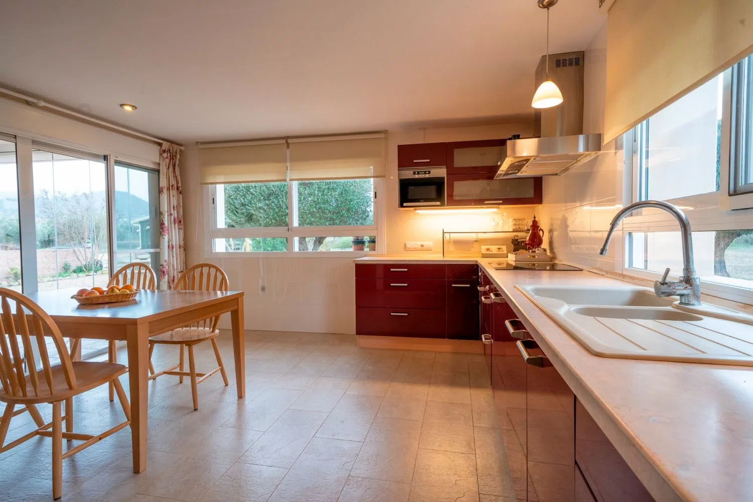 A tan solo 3 km en coche, encontrarás tiendas, restaurantes y bares que complementan la vida en esta región. La casa se distribuye en dos plantas. En la planta baja, de 152 m², hay dos acogedores dormitorios, una amplia cocina, un salón-comedor, un lavadero, un baño y un aseo. Además, cuenta con una magnífica terraza de 25 m² equipada con un sistema de acristalamiento y la opción de toldo plegable.