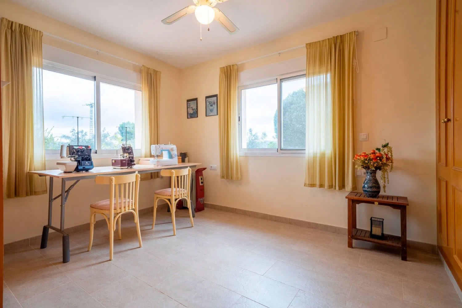 En la primera planta, que abarca 67 m², encontrarás un gran baño con ducha y bañera, un espacioso dormitorio con armarios empotrados y un generoso vestidor. También disfruta de una terraza de 12 m² que ofrece vistas inigualables. La parcela cuenta con 11.127 m², donde se han plantado olivos y árboles ornamentales, añadiendo un toque de naturaleza al entorno.